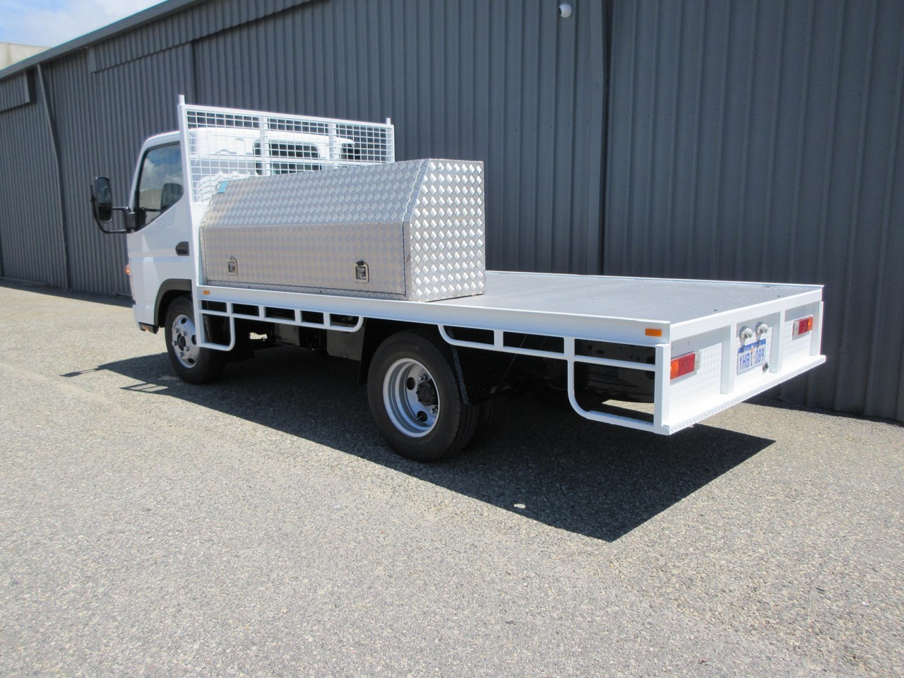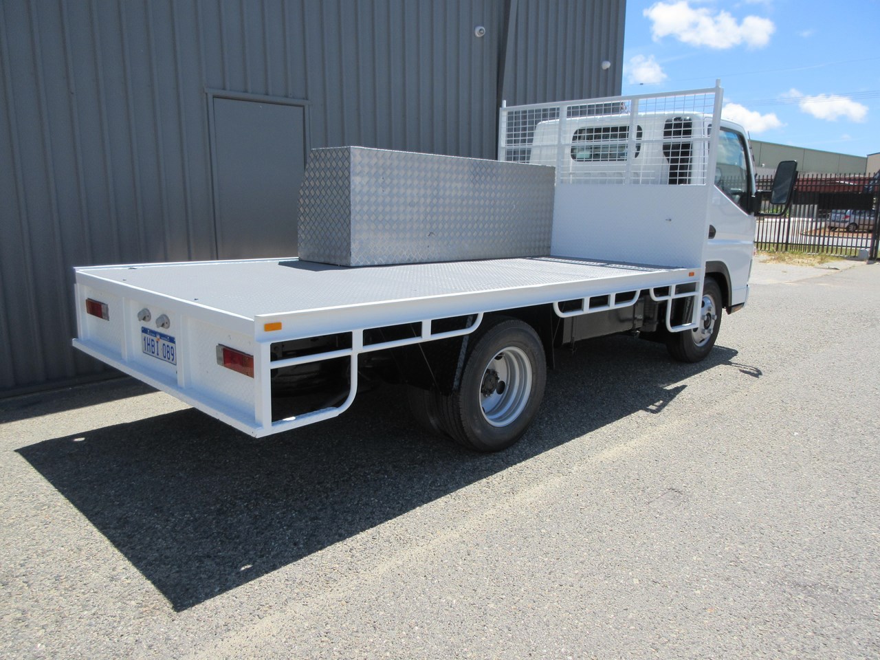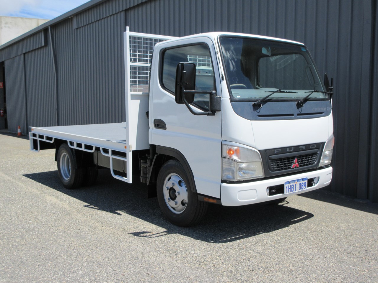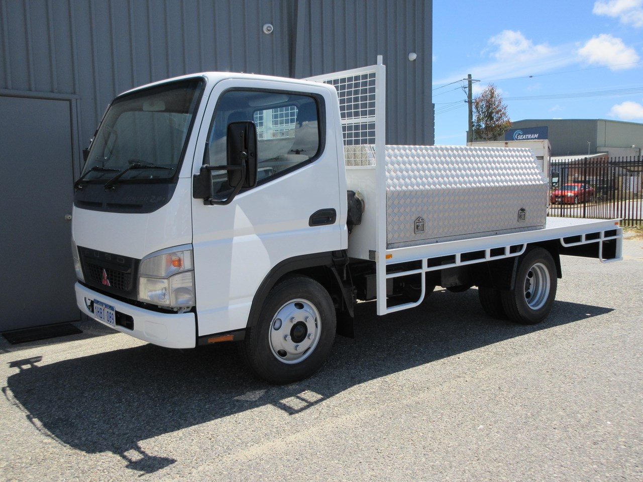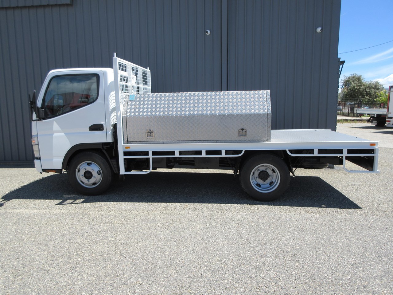 2005 Fuso Canter FE73 fitted with a 3600mm x 2000mm Steel Tray & Alloy Tool box with lift up door & shelving for all your tools & equipment, steps each side and a 50mm tow bar, great little tradies truck & affordable, can be driven with your standard car licence at 4500GVM.