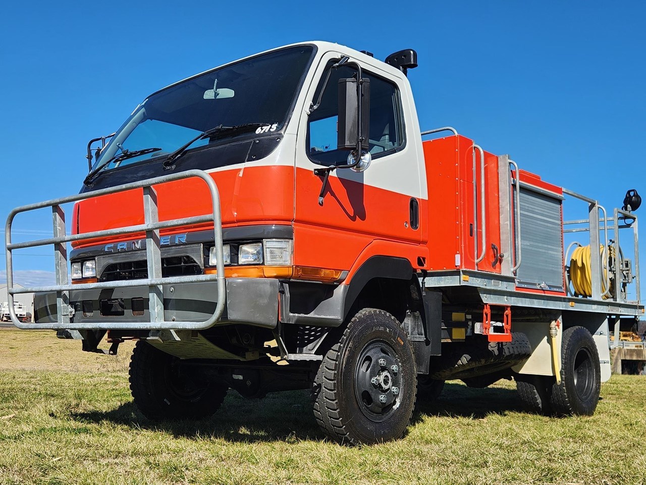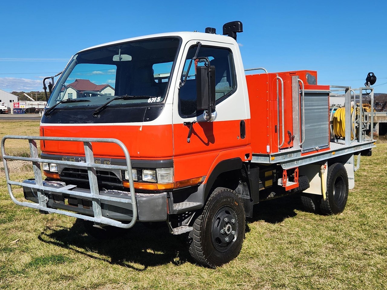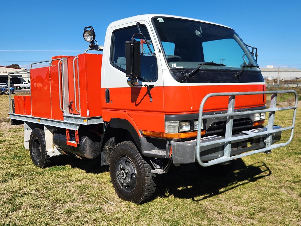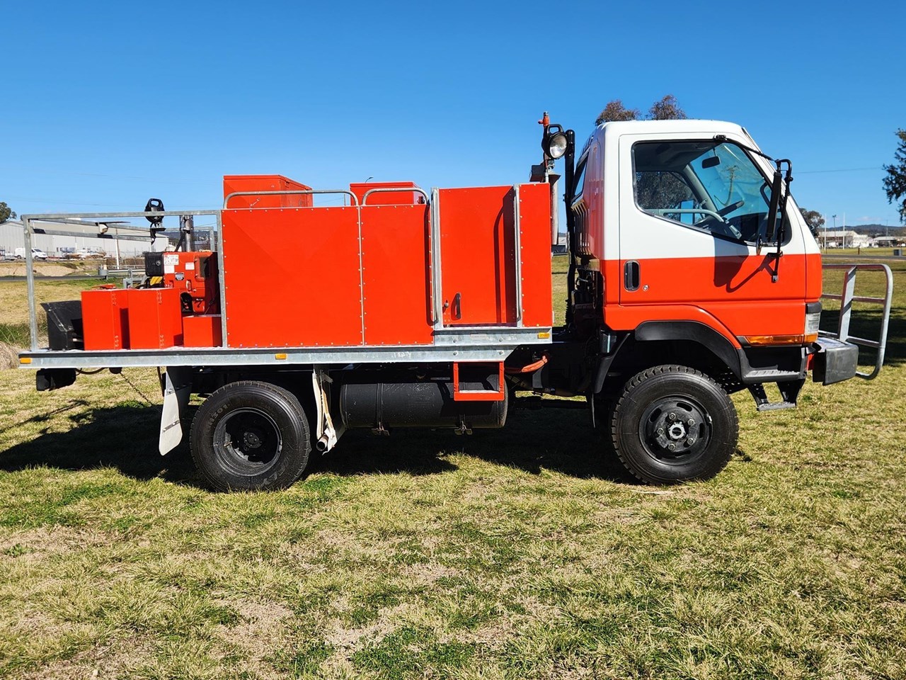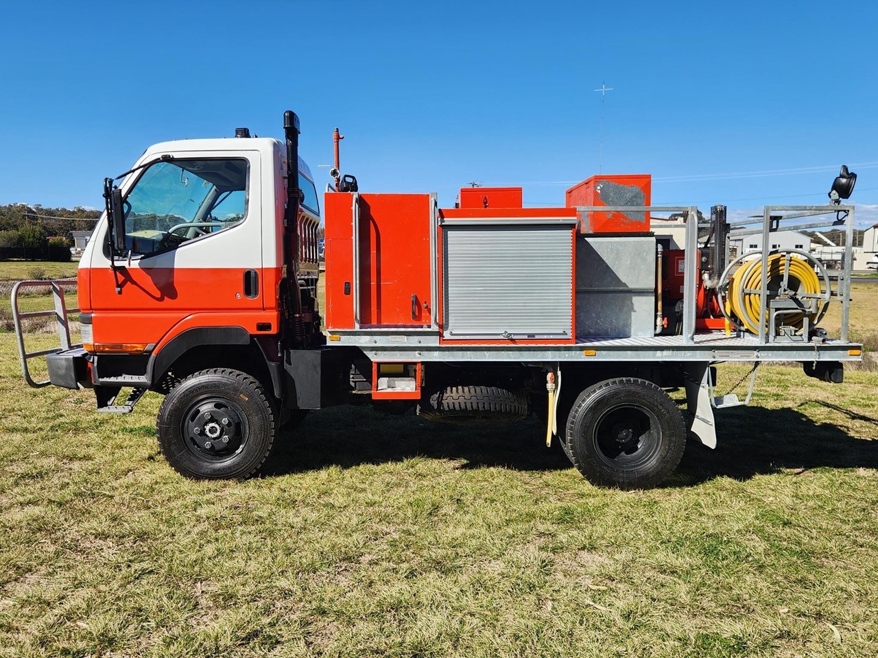 1998 Mitsubishi Fuso Canter FG 4x4 Single Cab Traytop Firetruck. Ex NSW Rural Fire Service with only 19,392 Kms. ( We also have similar spec Isuzu NPS300 4x4's in stock ) Mitsubishi Fuso 4D34 3.9 Litre Diesel,5 Speed Transmission with High/Low Range 4WD Air Conditioning,3 Seats,Galvanised Steel Bullbar,Tow Point Fitted with Steel Rural Fire Service Tray Body with Galvanised Steel Water Tank Hatz Diesel with GAAM Pump & Quenchmaster SA300 Form Proportioning System & Hose Reel Multiple Toolboxes & Work Lights Tray L-3550 x W2100 GVM 5500. Wheelbase 2800. ( Can be de rated to car license 4500 GVM ) Sold fully serviced with current NSW or QLD Roadworthy Price includes GST & Tax Invoice Competitive finance available Delivery arranged to any state Independent inspections welcome Other 4x4 Trucks & Fire Trucks in stock including Isuzu FTS800,FTS700,FSS550,FSS500,NPS300,NLS45/150,FTR800,NPR400,NPR300 Hino GT,FT,FE,GD Mitsubishi Fuso Canter & FM600 UD CW45 Tanker Scania,Volvo,Mercedes Benz,Freightliner,Iveco,International,Ford L8000 4x2 4x4 6x4 8x4 Single Cab & Dualcab Firetrucks,Water Truck,Water Tanker,Ladder Truck,Tabletop,Cab/Chassis,Tipper,Cranetruck,Beavertail,Service Body,Prime Mover,Curtainside,Refrigerated Pantech 2 x Tri- Axle Semi-Trailer Rural Fire Service Water Tankers currently in stock with matching Prime Movers Ex Govt,Council,Forestry,National Parks,SES,Rescue Squad,Fire & Rescue Service,Rural Fire Service & Major Fleets Established 1991 with over 200 Trucks in stock