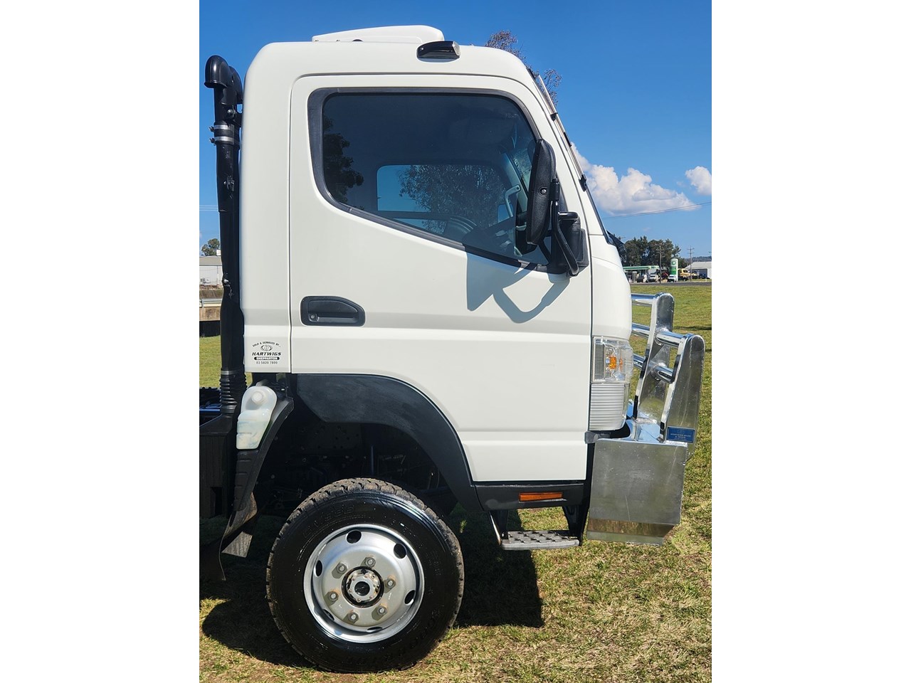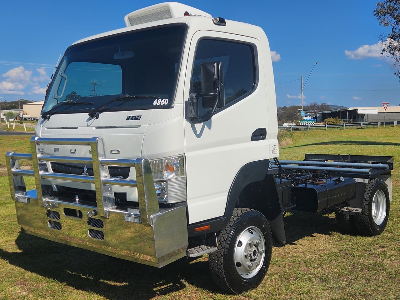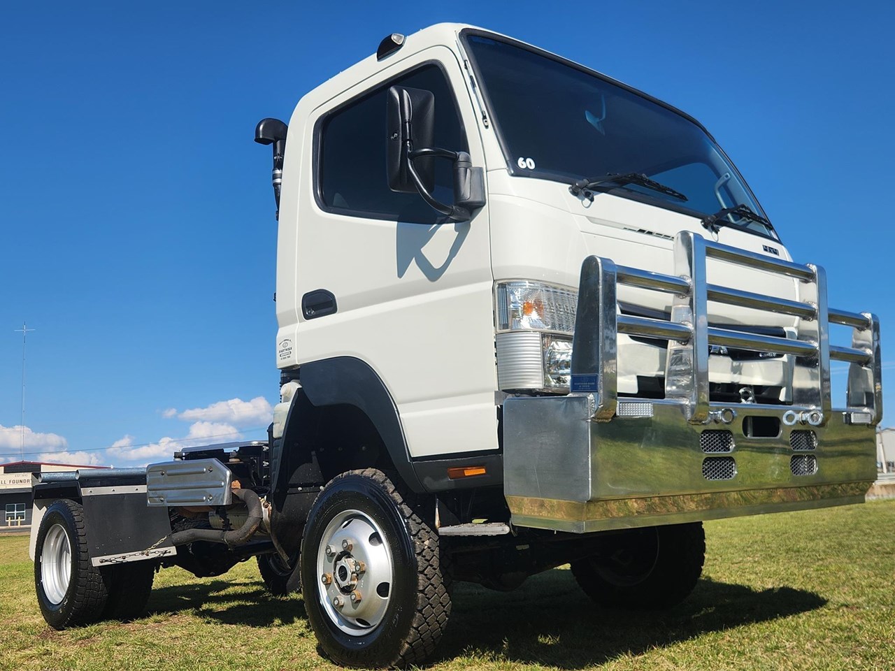 2019 Mitsubishi Fuso Canter FG 715 4X4 Single Cab Cab/Chassis. High/Low Range 4WD with Diff Lock One Owner SG Fleet with only 90,092 Kms Mitsubishi Fuso 150HP Intercooled Turbo Diesel,5 Speed Transmission with High/Low Range 4WD & Diff Lock Air Conditioning,Polished Alloy Bullbar,Hayman Reese Towbar with Electric Trailer Brakes & Reversing Camera 3 Seats with Drivers Suspension Seat Window Tint,Canvas Seatcovers,Floor Mats GVM 6500. GCM 10000. Wheelbase 2800. Usable Chassis Length 3250. Chassis Width 750. Sold fully serviced Price includes GST & Tax Invoice Competitive finance available Delivery arranged to any state Independent inspections welcome Other 4x4 Trucks in stock including Isuzu NLS45/150,NPS250,NPS300,FSS500,FSS550 FTS700,FTS750,FTS800 Hino 500 Series GT,FT,300 Series Mitsubishi Fuso Canter Iveco Daily Single Cab & Dualcab Cab/Chassis,Traytop,Service Body,Cranetruck,EWP,Beavertail,Water Truck,Fire Truck,Camper Conversion Ex Govt,Council,Forestry,National Parks,SES,Rescue Squad,Fire & Rescue Service,Rural Fire Service,Coles,Woolworths & Major Fleets Established 1991 with over 200 Trucks in stock