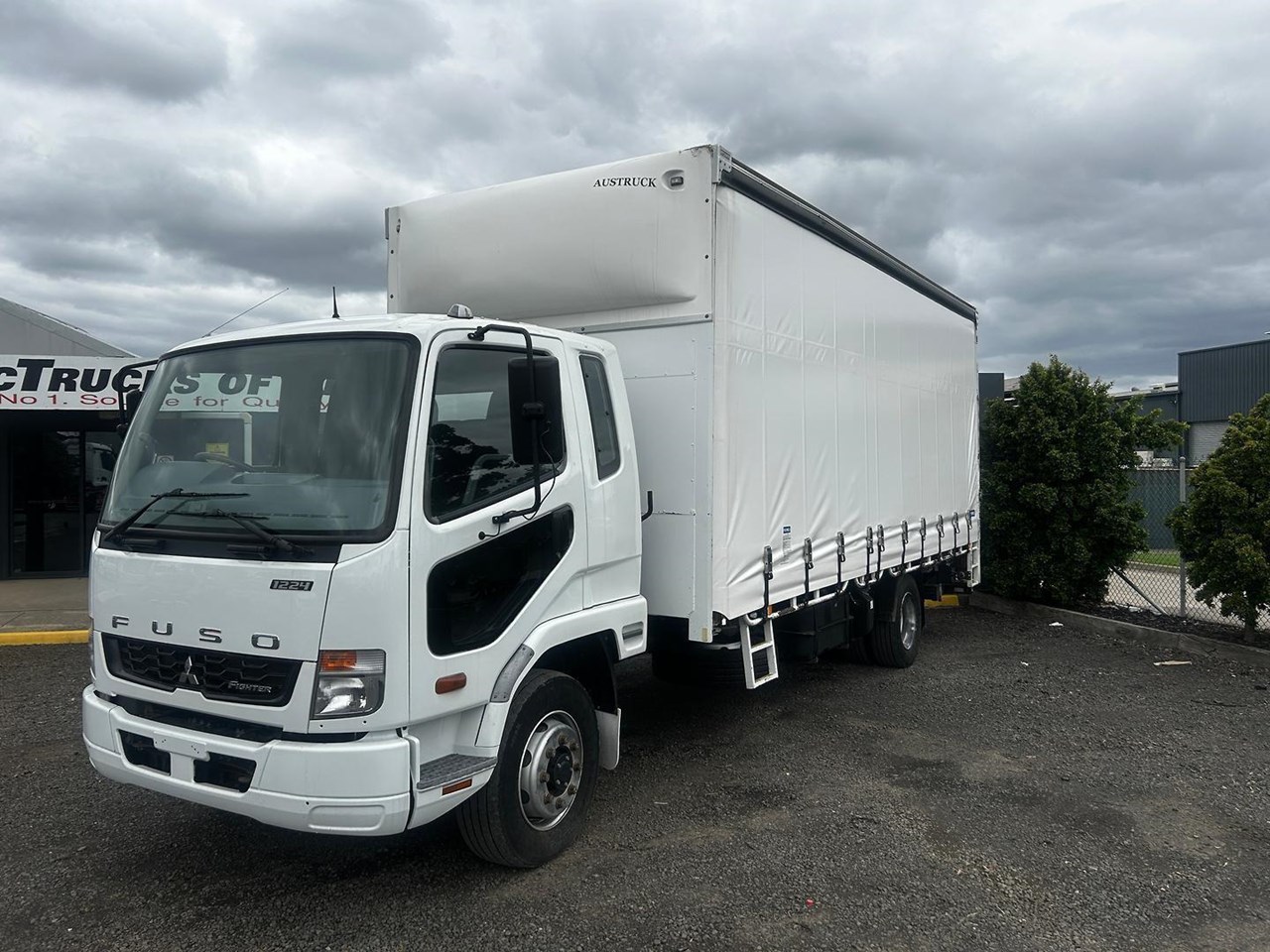 2014 Fuso Fighter 1224 4x2 10 pallett curtainsider , fuso 240hp. auto transmission, fuso diff, GVM 12000 GCM 15000 tare is 6940, fitted with brand new load restraint curtains, rear tail gate loader , comes with 3 months or 50,000klms drive-line warranty & vic RWC !