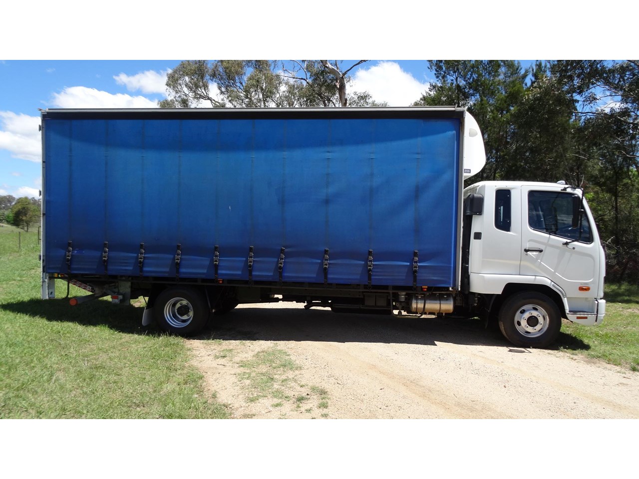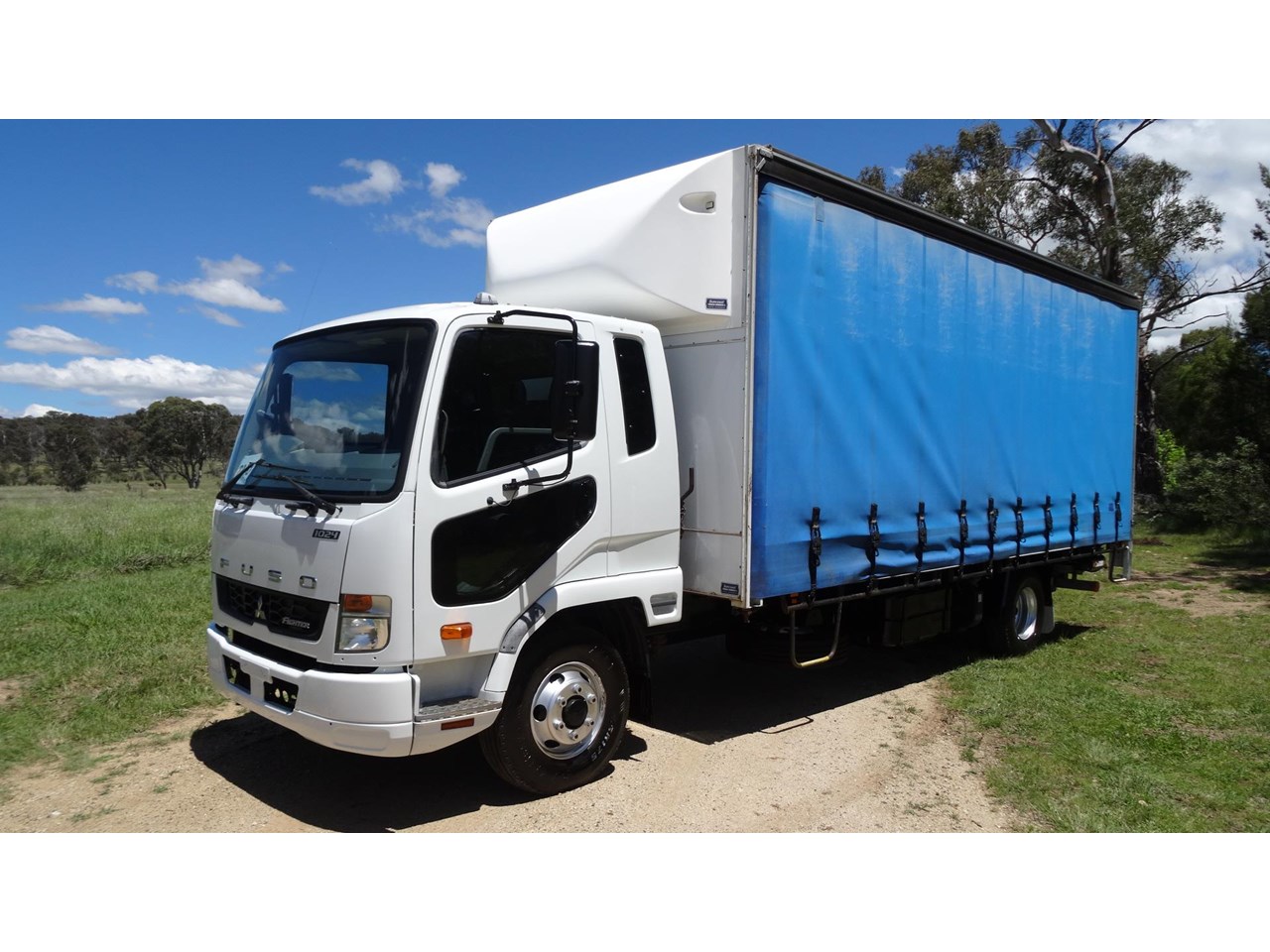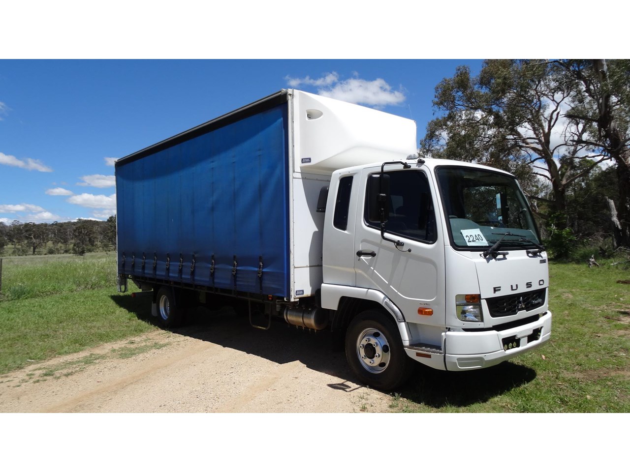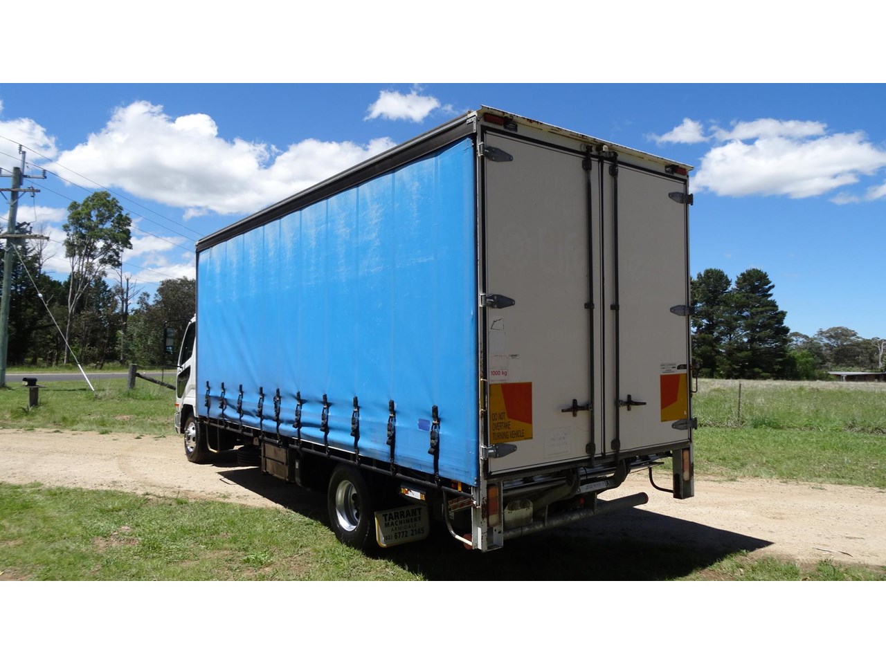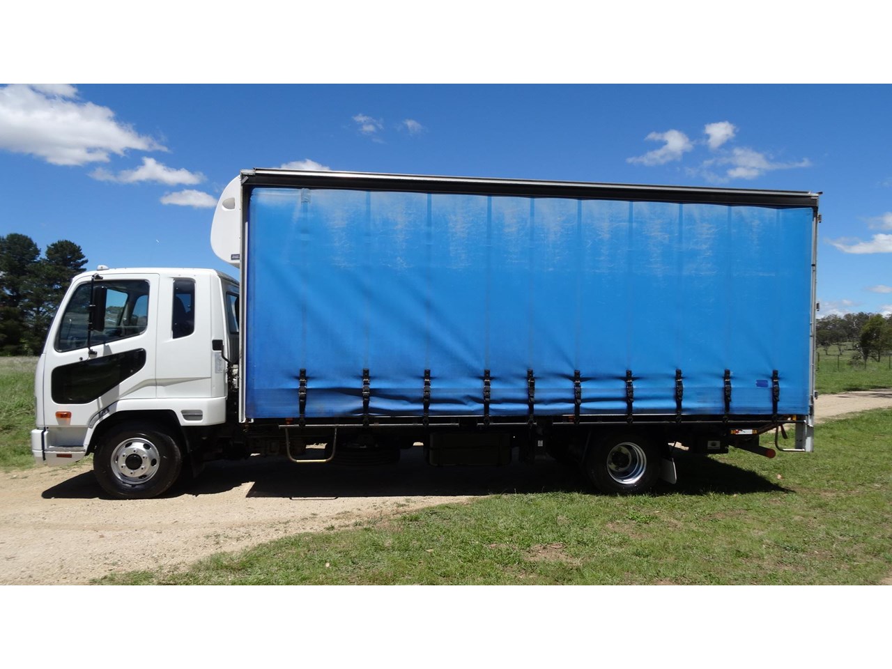 MITSUBISHI FUSO FK600 FIGHTER 1024 10 PALLET CURTIANSIDER, YEAR-8/2016, LOW 309000 KMS AND 5714HRS, 240HP TURBO INTERCOOLED,6 SPEED MANUAL, 10400 GVM, 16000 GCM, 5210MM WHEEL BASE, 6.115M LONG X 2390MM WIDE X 2.320MM HIGH(ALL INSIDE MEASUREMENTS), 1000KG TUCKAWAY TAILGATE LIFTER, REAR BARN DOORS, REVERSE CAMERA FITTED, FULL SET OF STEEL GATES, NSW RWC, S/N-2240. PRICE $59900.00 INC GST. LOCATED IN ARMIDALE NSW.