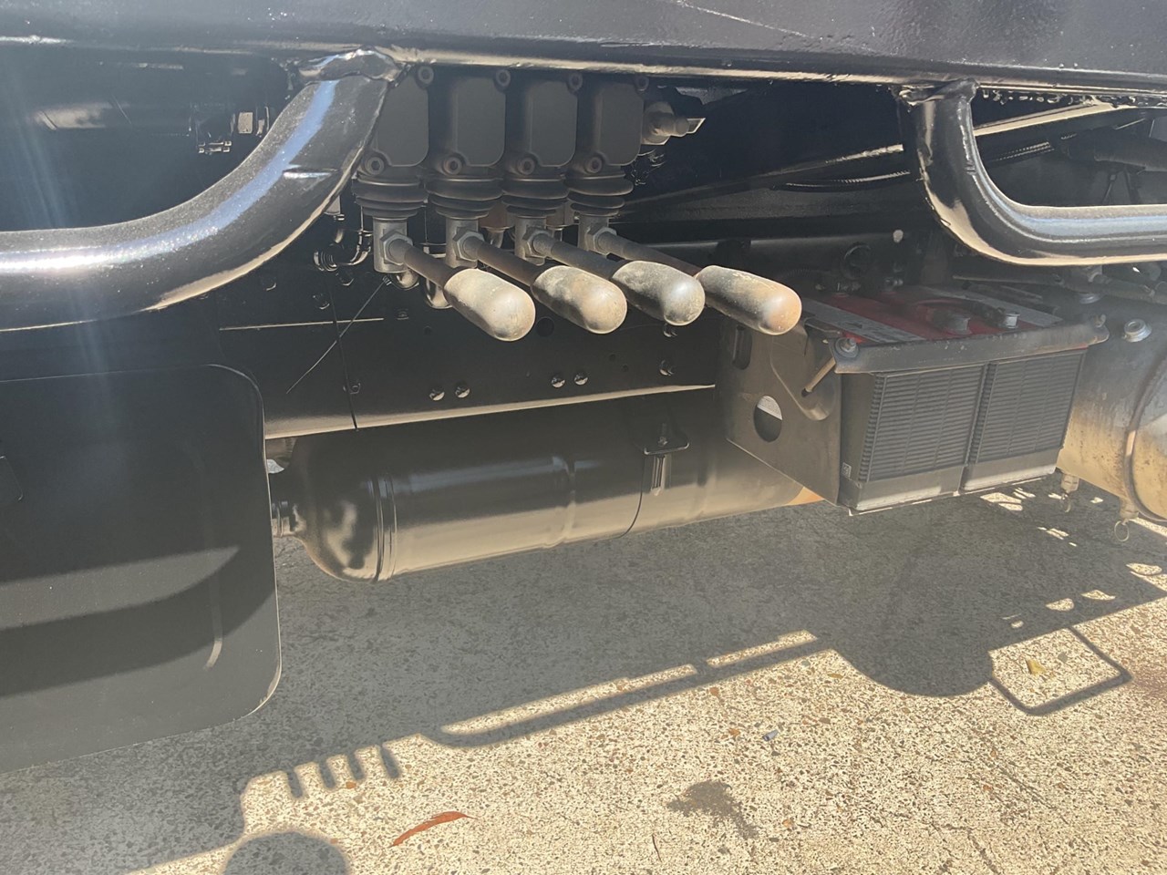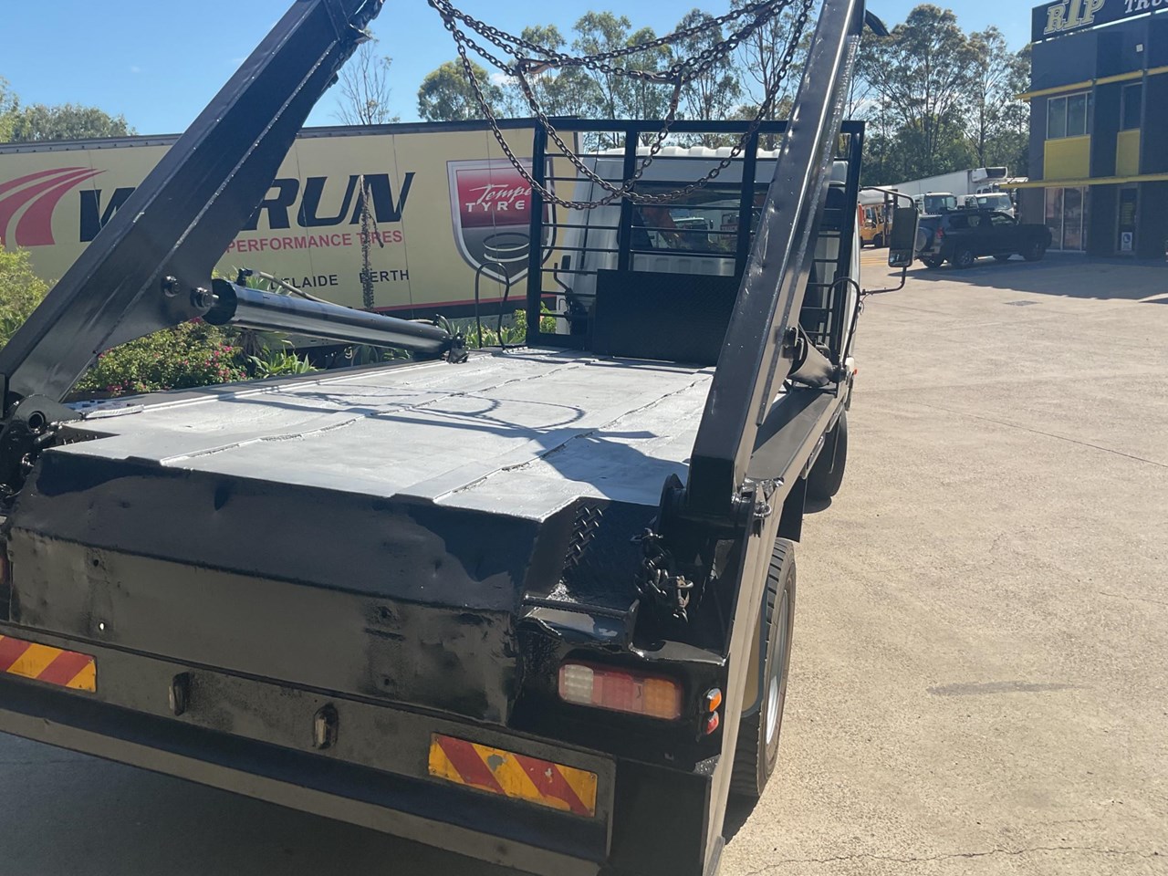 A reliable, work-ready skip bin truck with a freshly painted loader and all the specs you need for heavy-duty operation.