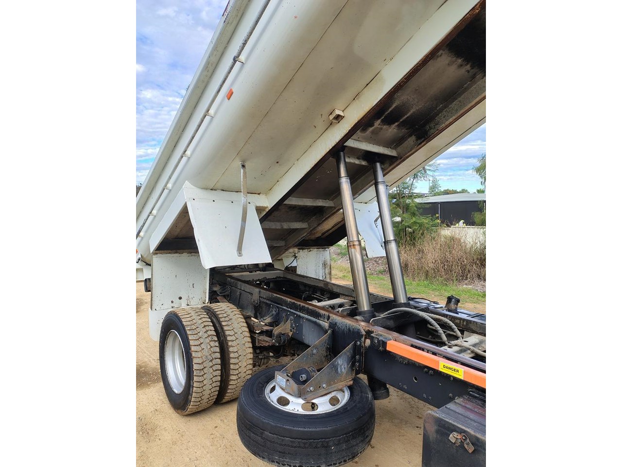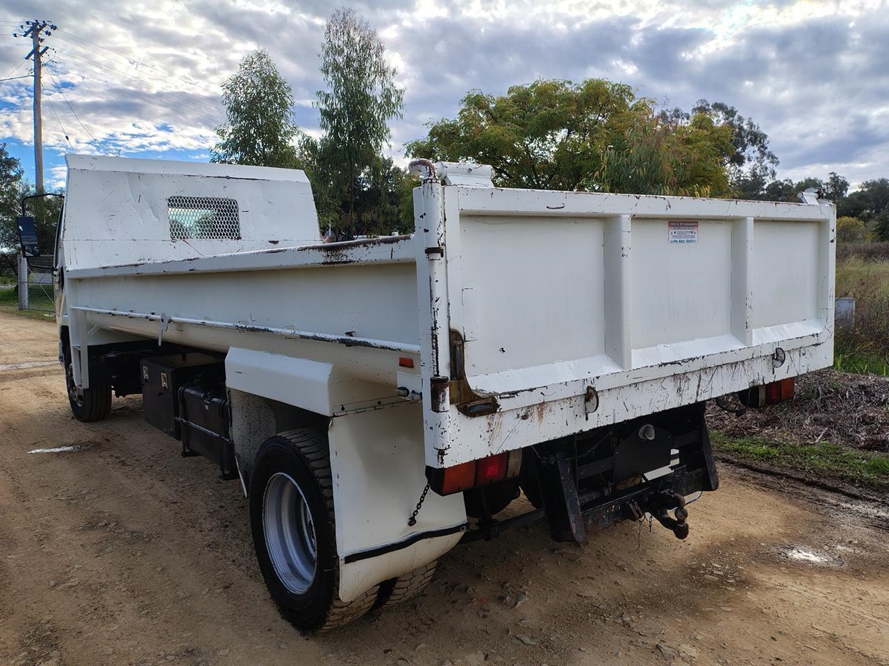 2009 Mitsubishi FK 600 Tipper, 12 t GVM, 5150mm long tipping body with two way tail gate, tow bar with combinatin pintle hook / 50mm ball, Tare weight 5710kg. Will carry 6300 KG (6.3t)