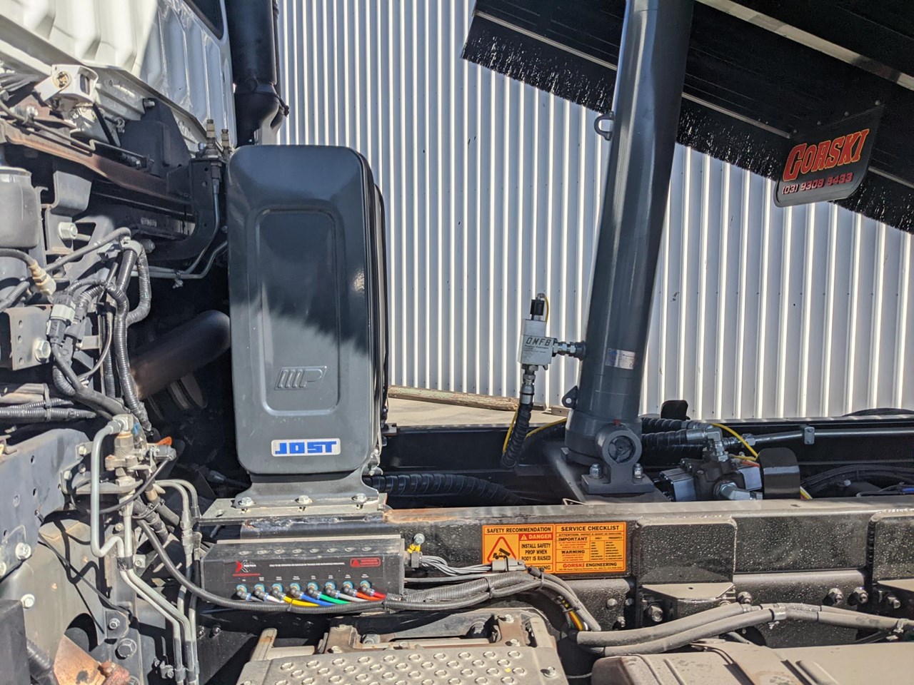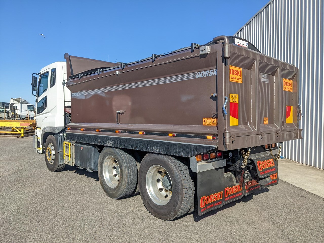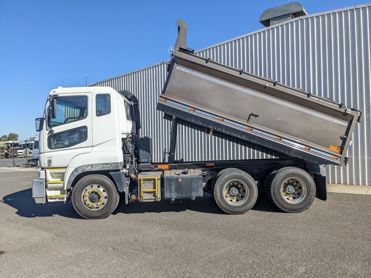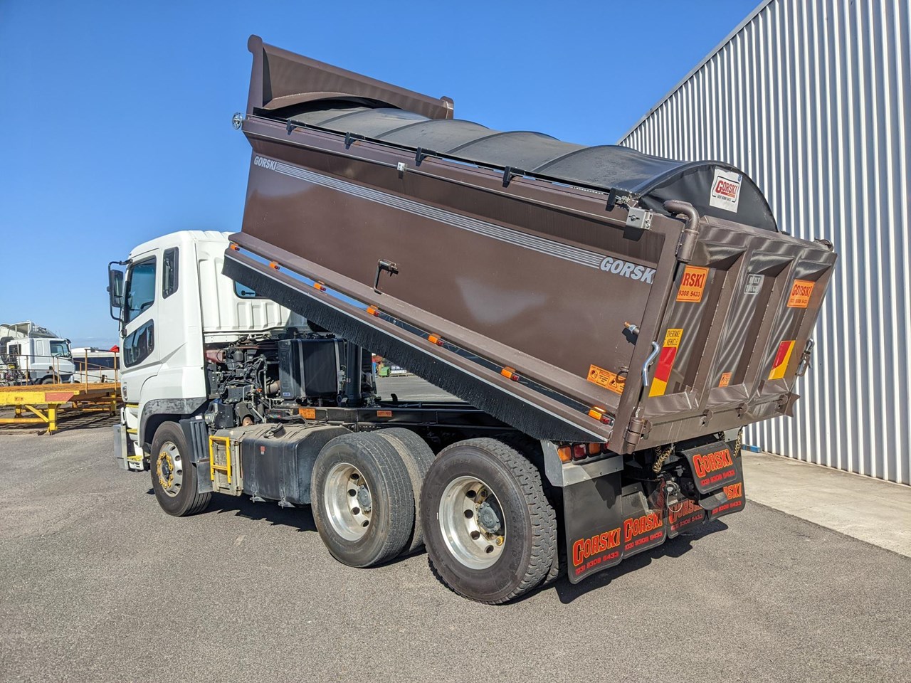 Sleeper Cab, 455HP Turbo Diesel, 12 Spd Automatic, GCM: 63,000kg, Bogie Drive on Airbag Suspension with Diff Lock, Fitted With Brand New Gorski 10m³ Tipper Body, 2 Way Air Tailgate, Razor Electric Tarp & Plumbed for Dog with Air & Oil to Rear. GENUINE LOW 259,000kms & 6,378Hrs from New!