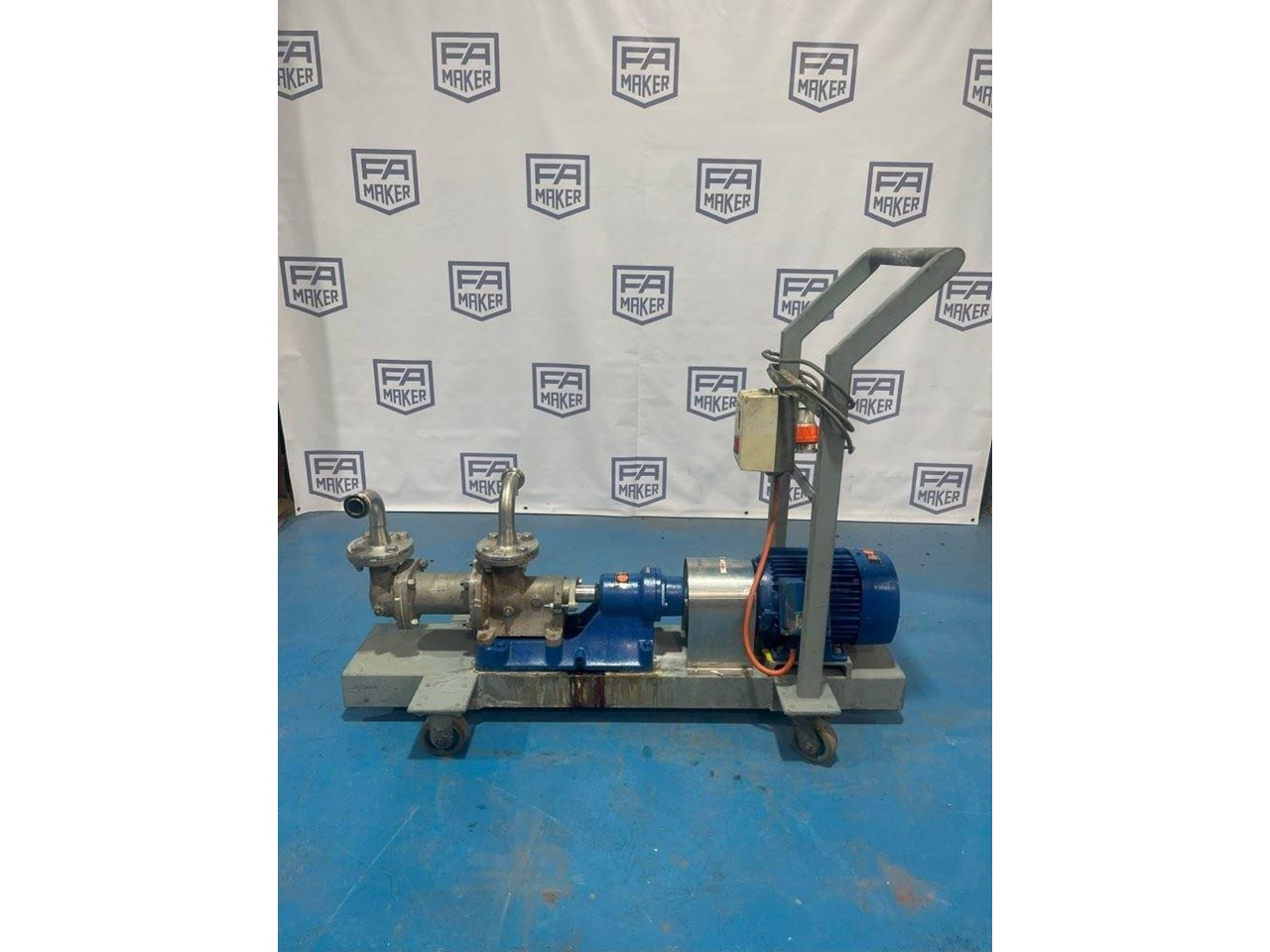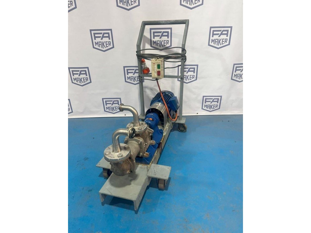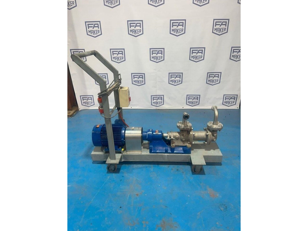 Mono - Stainless steel helical rotor pump. 2 Pumps available. 3 Phase, 2.2kW, 415V, 950 RPM. Suction/Discharge: 2 Inch (Pump) , 1.5`` BSM tube. Capacity: Approximately 9m3/hr or 151 l/min. Suction Lift: 8.3 metres. Fitted with D.O.L. starter. Pumps are mounted to heavy duty steel trolley. Pumps are in good condition and run well Price per pump.
