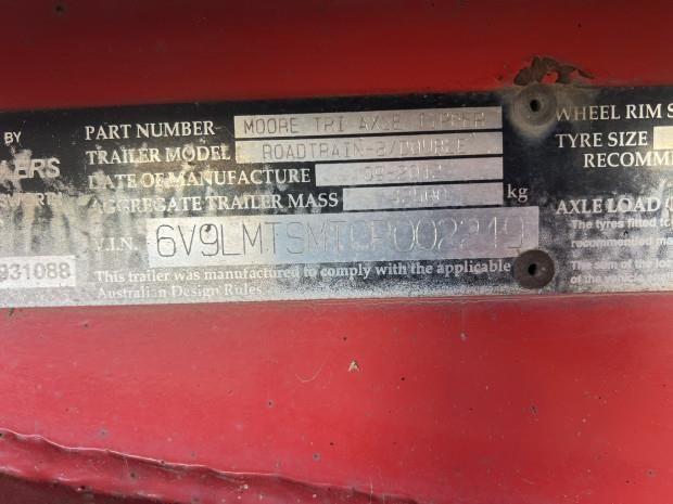 2012 Moore 27'6'' x 6'6'' A Slider Hendrickson Intraax Suspension with Hendrickson Conmet PB Axles, Toolbox, Watertank, Plastic Guards, Roadtrain Lead, Holland Grease type Turntable, Airtec Digital Gauge
