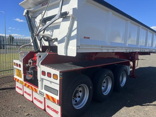 New 2025 Moore Side Tipper, Spring Suspension, New Tyres/10-285 Steel Rims, Toolbox, Water Tank, Manual Mesh Roll Tarpaulin, Roadtrain Lead inc. 303AUS Ringfeder...
