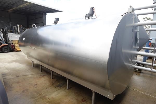 Unit is a stainless steel jacketed full welded insulated mixing milk tank.