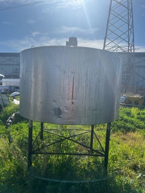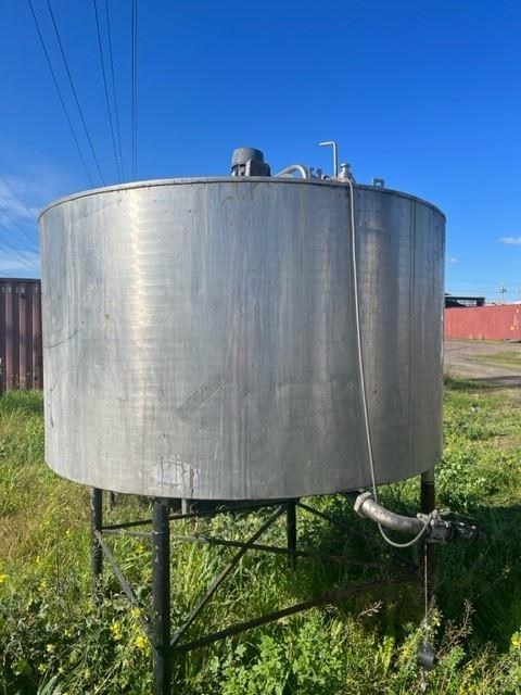 Stainless steel tank 2200lt Insulated and jacketed. Jacket has not been tested. 2 inch outlet. 1750mm dia 900mm high. 1 hp agitator. Open top.