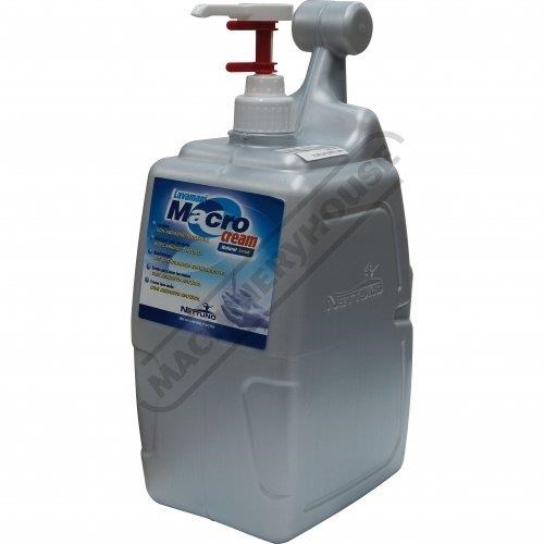 Creamy fluid hand cleanser with unique detergent and softening properties. The washing base is a combination of ingredients, free of solvents and of other substances harmful to the skin, but effective against dirt of any kind. Macro Cream also contains fine micro-spheres of vegetable origin that add strength to the cleansing action. Its pH means it can be used as needed, without causing any reddening of the skin.