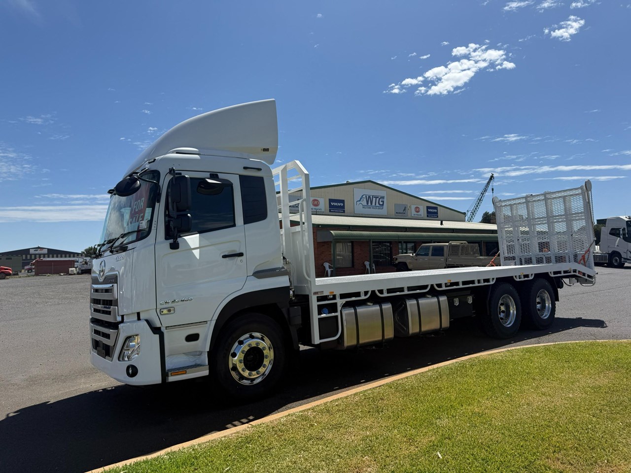 CW 26 460 A 6X4 UD Quon Tractor: 03/2025 Compliance, UD 11 Litre Engine, 460HP, ESCOT 12 Speed Transmission, 5350mm Wheelbase, RTS2370A Rear Axles on RADGR 8 Bag Rear Suspension, 4.50 Rear Axle Diff Ratio, Lane Change, Collision Warning, 800Ltr Fuel Capacity, Capital Body Works Beaver Tail Body, 50,000KG GCM, 26,000KG GVM. Fully Fit Up, Immediate Delivery.