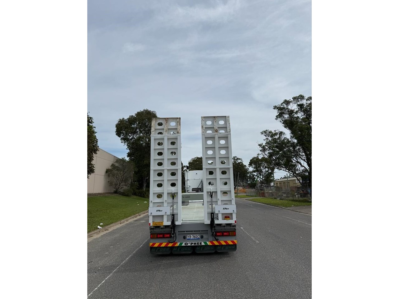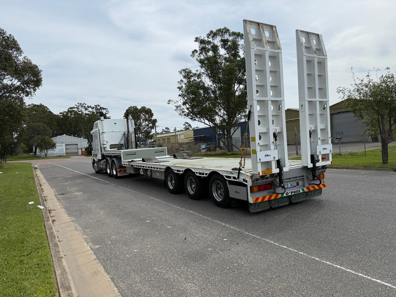O'Phee's Drop Deck Trailers feature a unique frame and suspension, With standard 'one-piece' neck design, this trailer offers added strength, reinforced further by the neck strap.