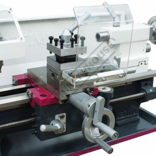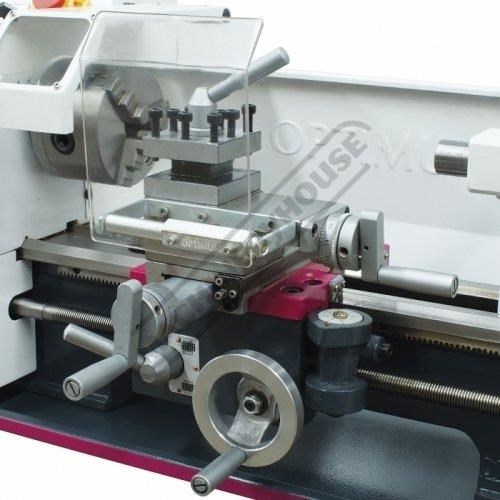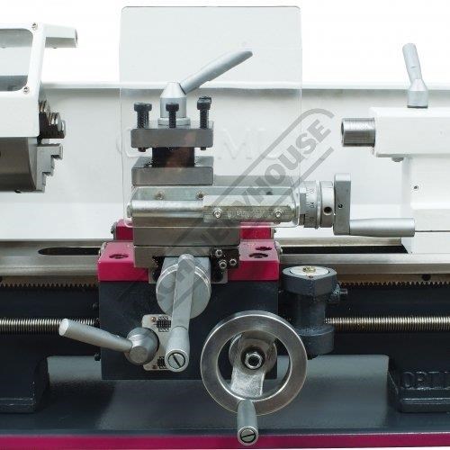 Features such as the electric variable speed control, manual or powered leadscrew feed, metric & imperial thread cutting and an extensive range of accessories. The lathe comes supplied with 100mm diameter three jaw self-centring chuck, tailstock centre and service tools.