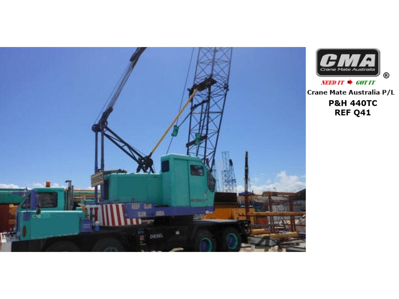 2 x P&H 440TC (36T) Pin Jib truck crane both have been 10yr rebuild & certified in 2016, they are all in good working order, all accessories & fly jibs.