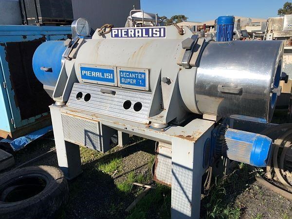 Super1 Decanter, Pieralisi Italy. Model Super 1. 11kw 400v 3 phase motor. Capacity Up to 6000L/hr Ex Olive oil industry. The decanter is used for the separation of two or more phases of different specific gravity, in particular for the clarifying of liquids in which suspended solids are present. The separation of solids and liquids takes place within a cylindrical/conical rotating bowl, upon the periphery of which the heavier solid phase collects and is continually removed by the internal conveyor. Requires starter for drive motor.