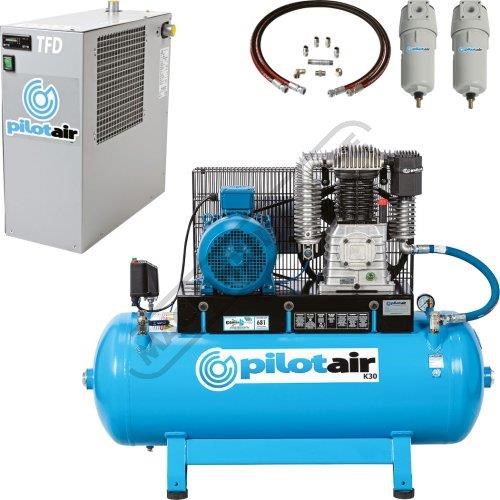 PILOT AIR COMPRESSORS K30 Classic Industrial Series 3 Phase Reciprocating - Pilot Air Compressor & TFD-10 Refrigerated Air Dryer Package Deal 200 Litre / 7.5hp 30.8cfm / 871.8lpm Piston Displacement