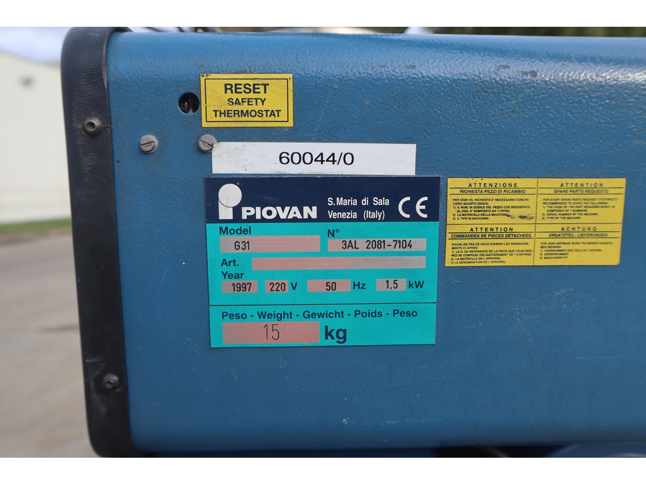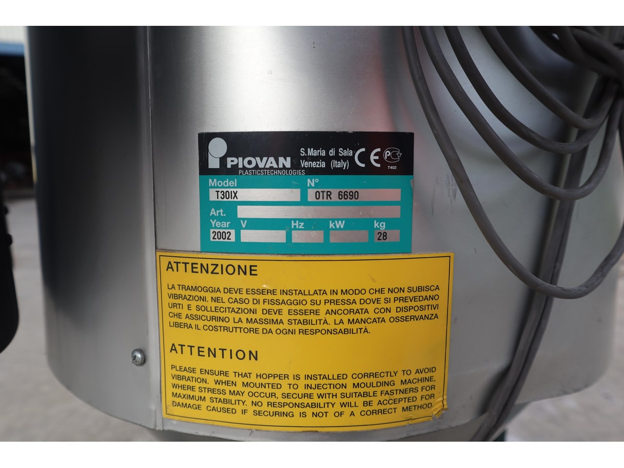 Title | PIOVAN G31 T30IX S31 - HOT AIR PLASTIC RESIN DRYER DRYING AND CONVEYING SYSTEM |