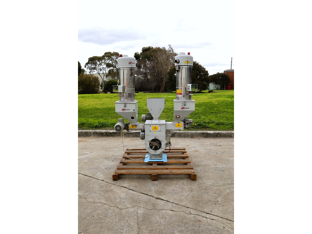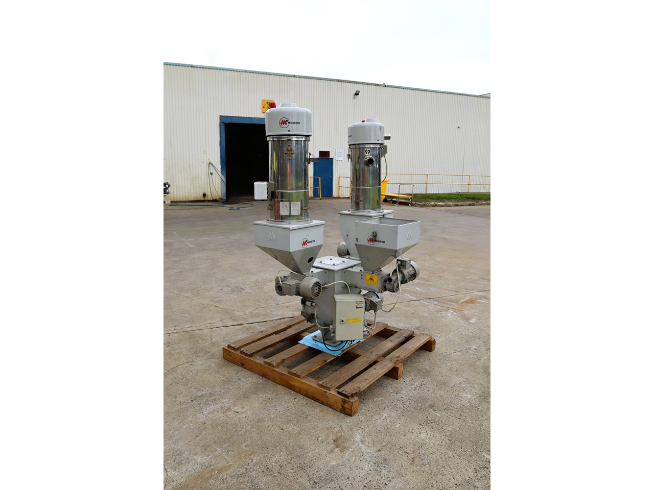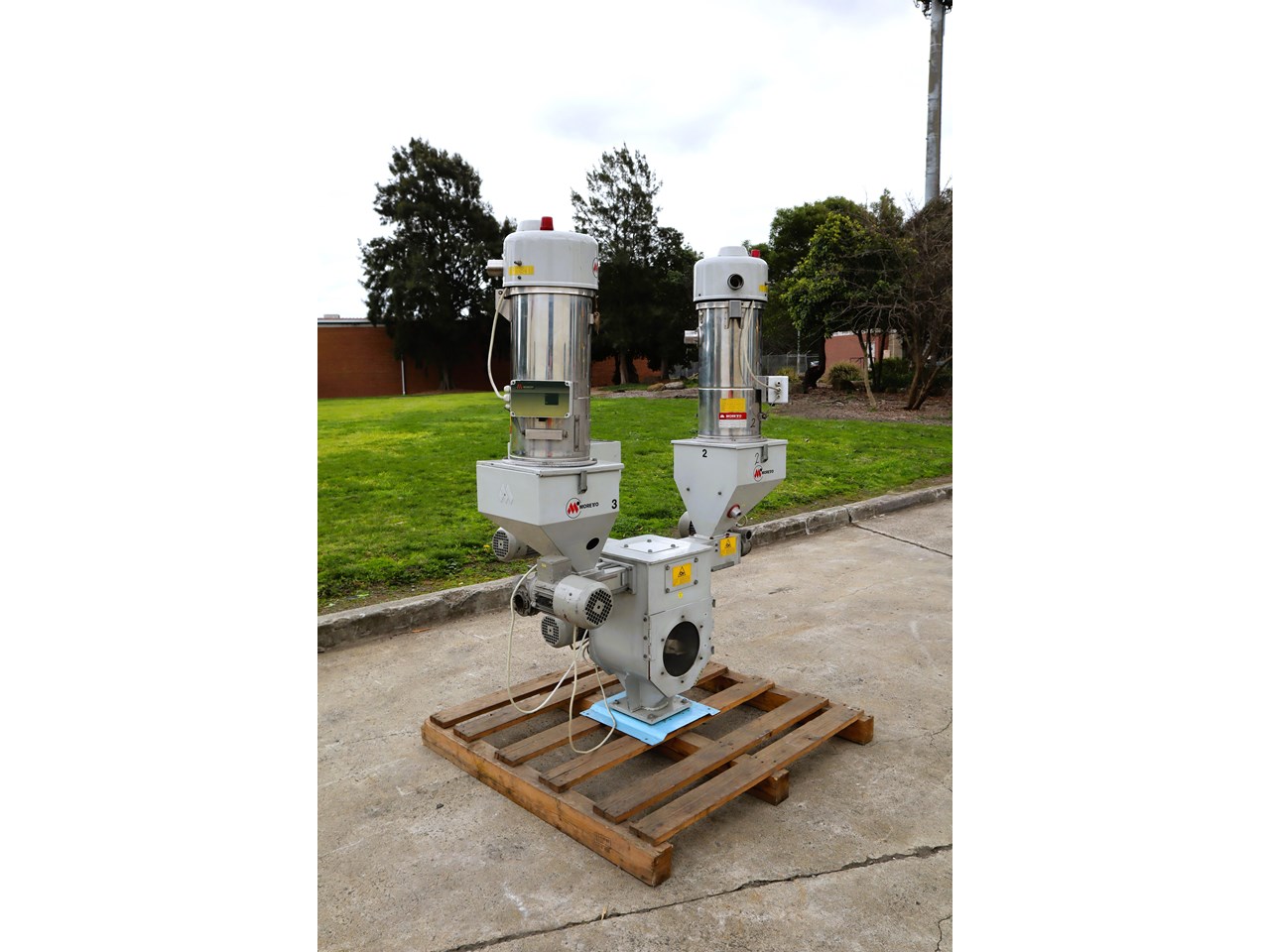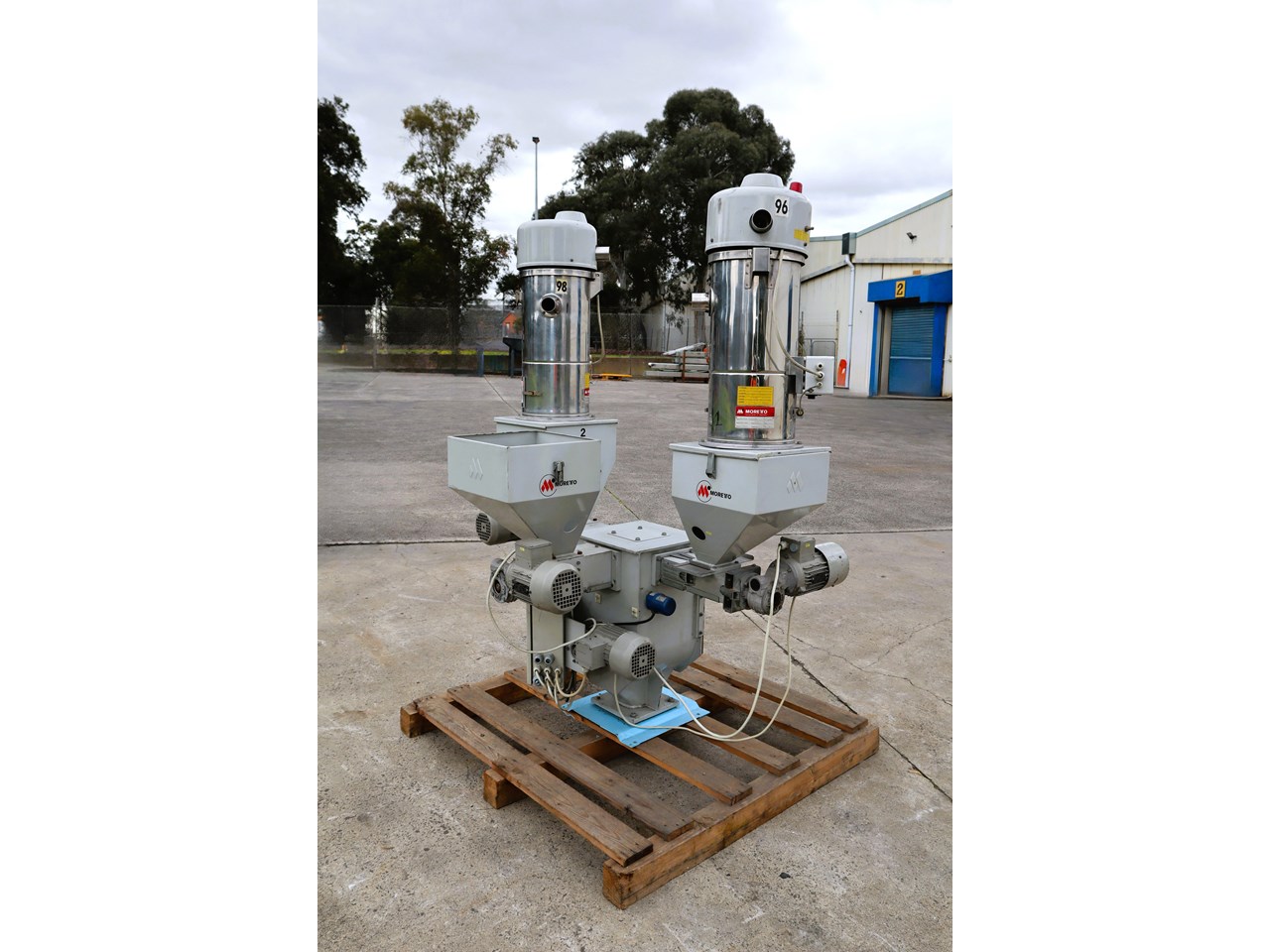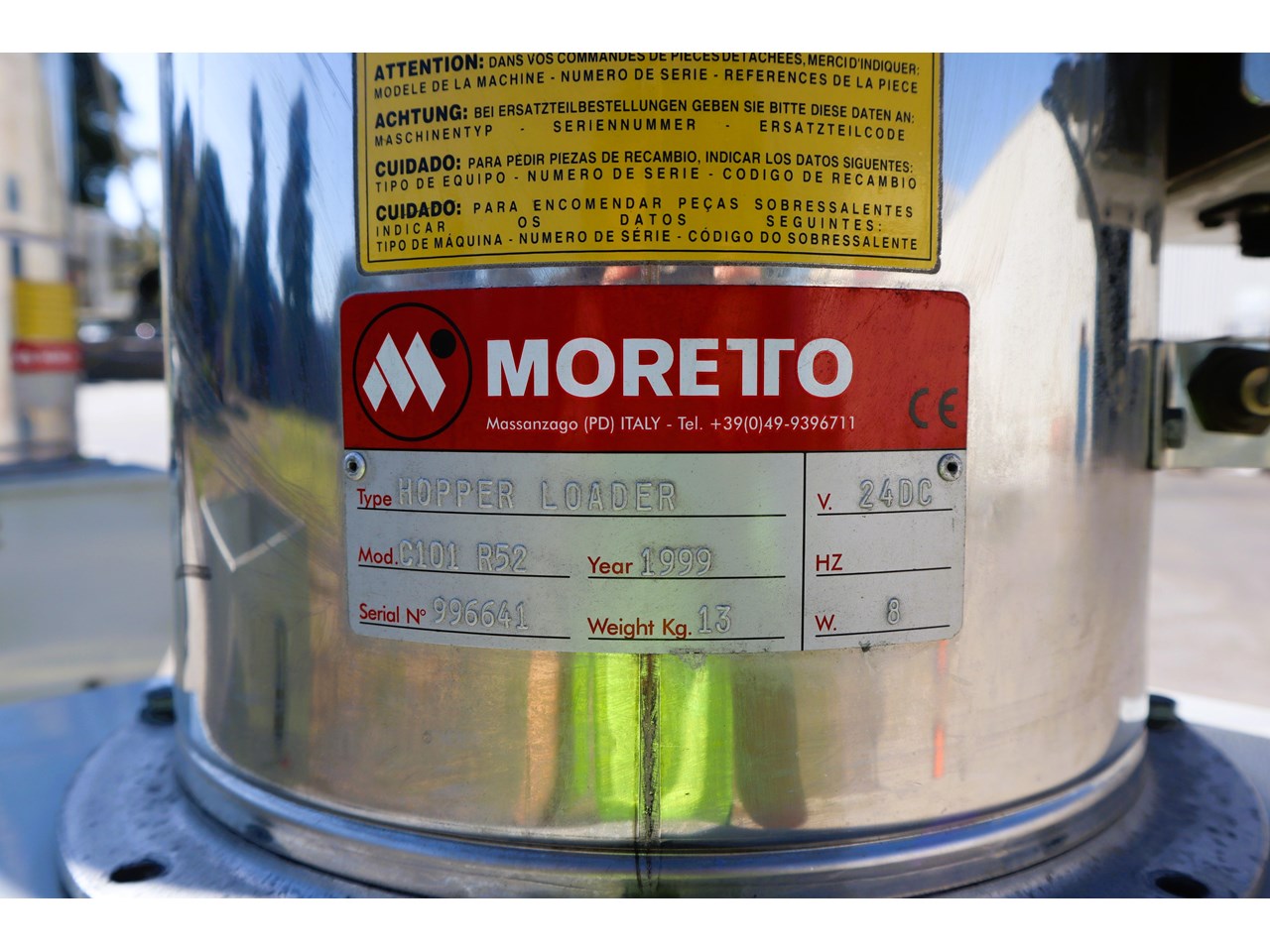Made in Italy and by the reliable Moretto brand, this integrated material handling station is designed for efficient conveying and homogeneous mixing of plastic resins, making it ideal for applications such as injection molding and extrusion. The main parts are made of stainless steel is in great condition.