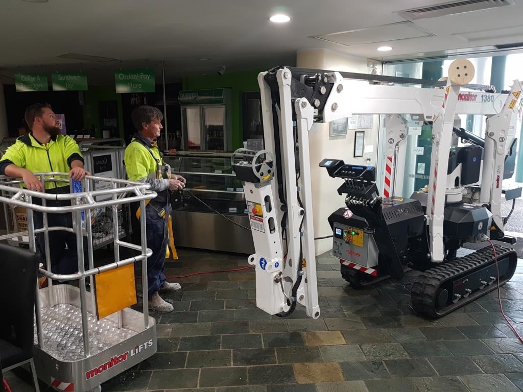 The Monitor 1380 Spider Lift's light weight and amazingly compact stowed dimensions allows you to use it in the most difficult locations.