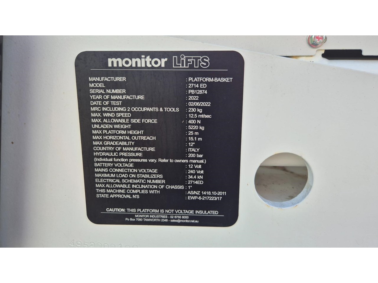 | Title | 2022 PLATFORM BASKET USED 2022 MODEL MONITOR 2714 ED - 27M SPIDER LIFT |