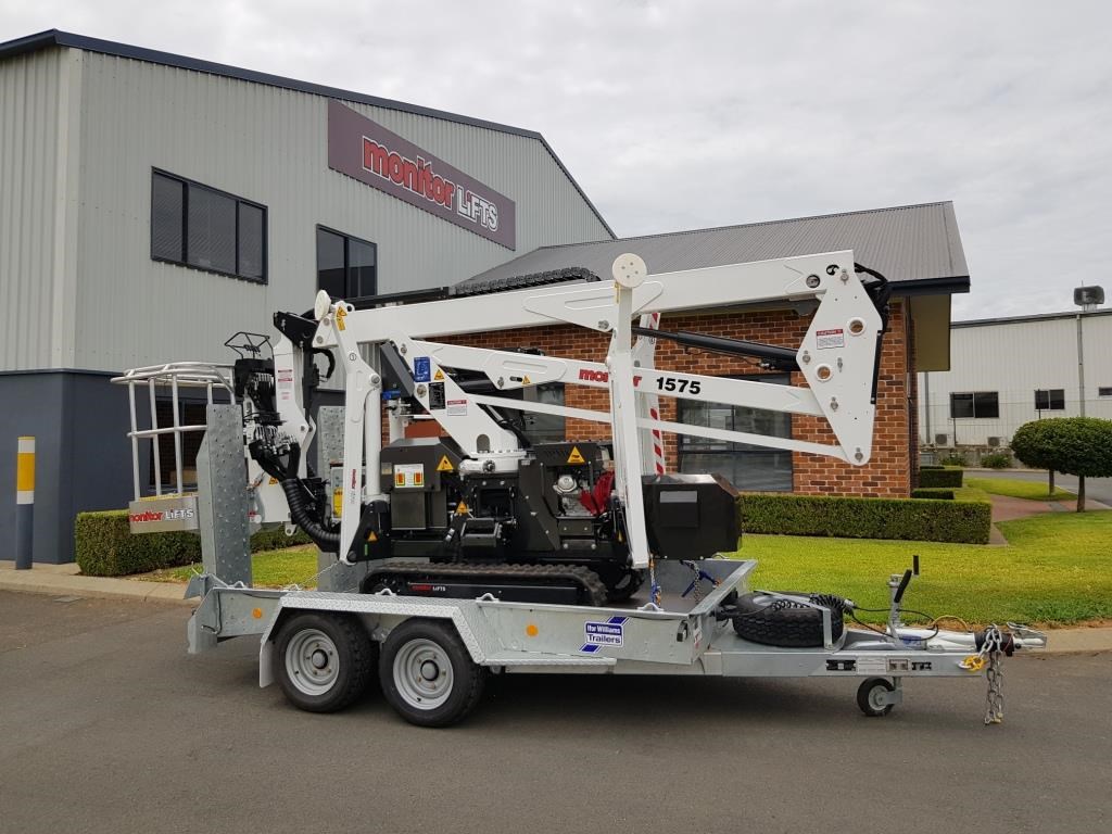 Uniquely, the dog-leg shaped stabilizers provide a huge amount of travel for setting up on very uneven terrain. The Monitor 1575 PRO is also equipped with a 14 hp water-cooled twin cylinder Kubota diesel or petrol engine, auto-levelling, platform rotation, ed drive, and remote radio control and stabilization.