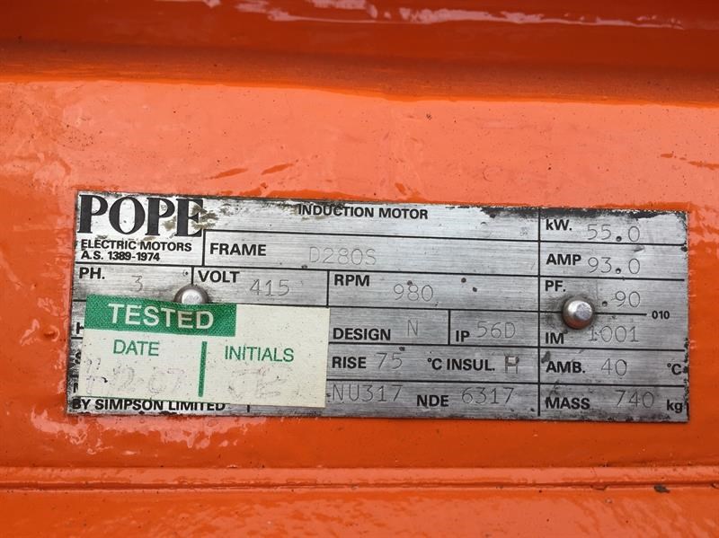POPE Electric Motor 55kw, 980rpm, 415V, 93 amp, IP56 Excellent Condition