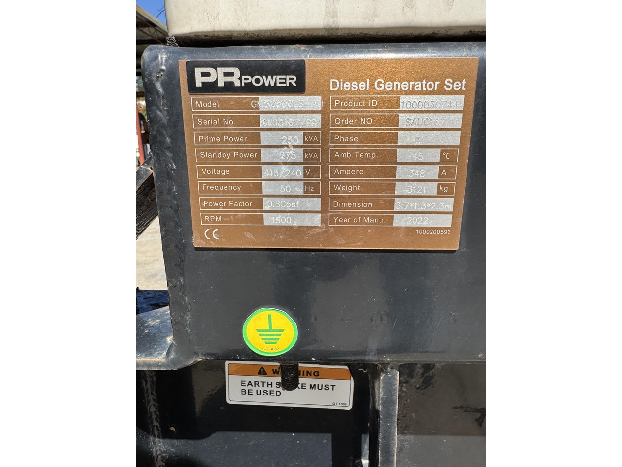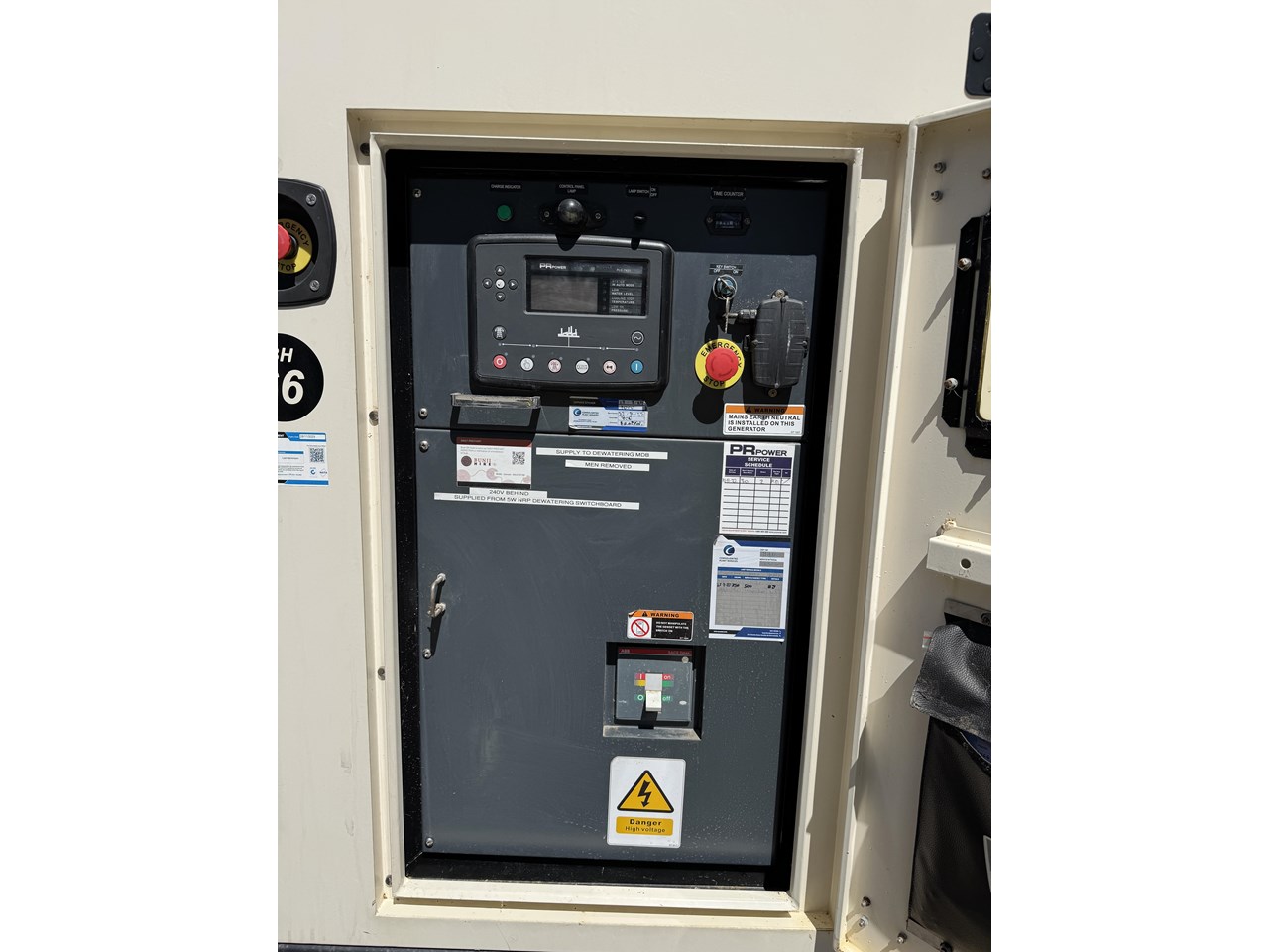 Generator Cummins 275 kva with 900 hours showing, load tested and ready to use. Set comes with block heater, battery charger, controller, circuit breaker, muffler and fuel tank base all mounted into a sound reduced canopy.