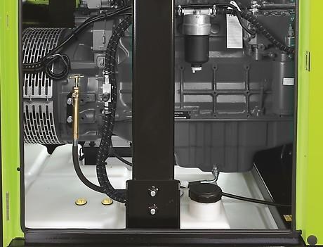 The Pramac GSW110P-PFL three-phase generator is powered by a Perkins diesel engine and has an output of 114.7kVA standby. Mounted on a solid welded steel base frame with anti-vibration mountings, the unit comes in a sound-reducing, weather-protected enclosure suitable for outdoor use.