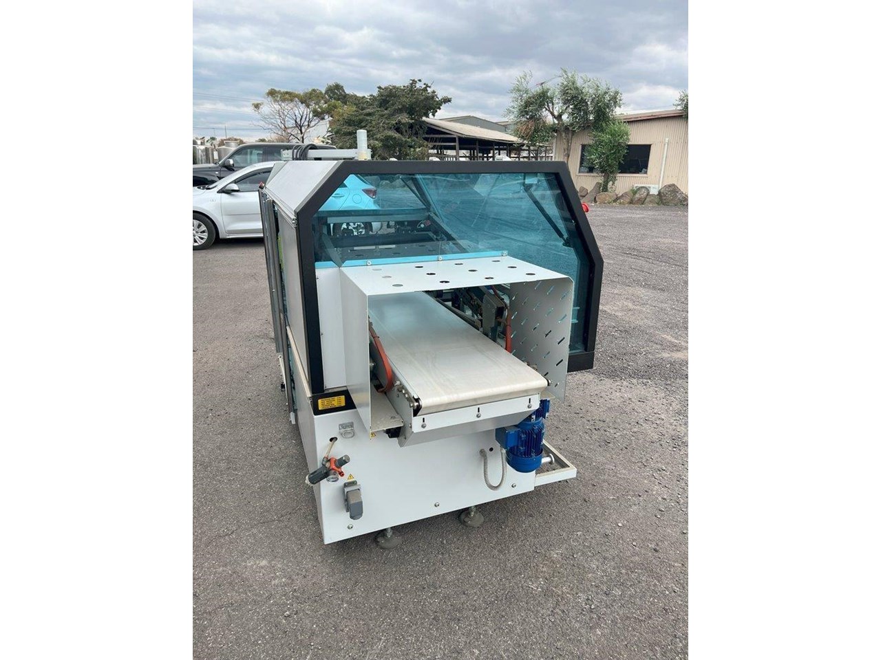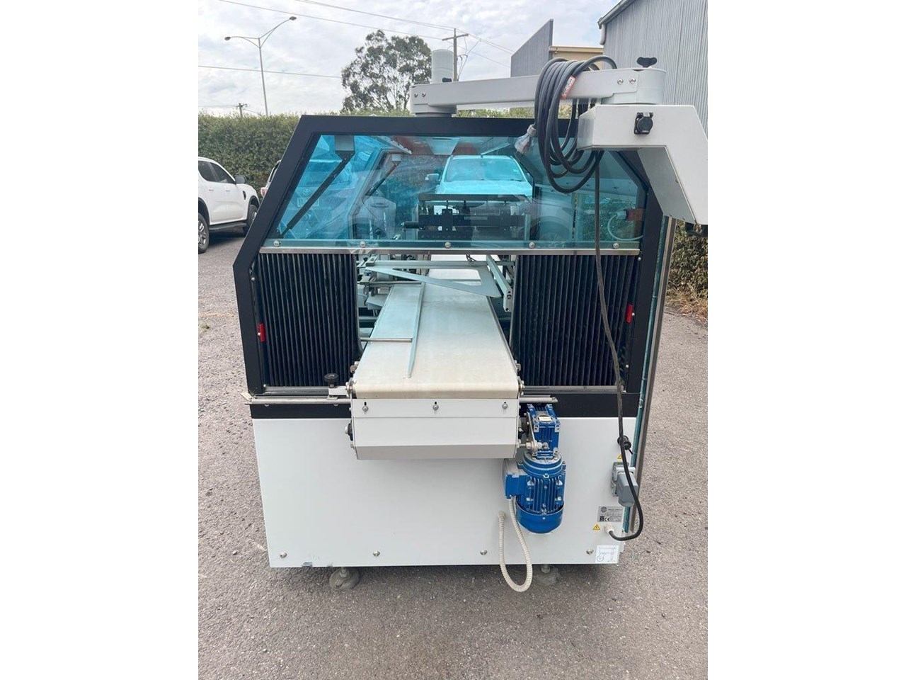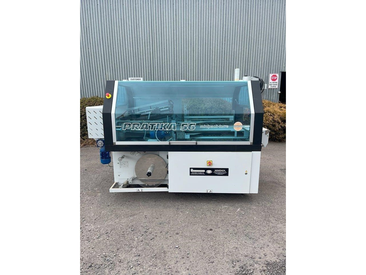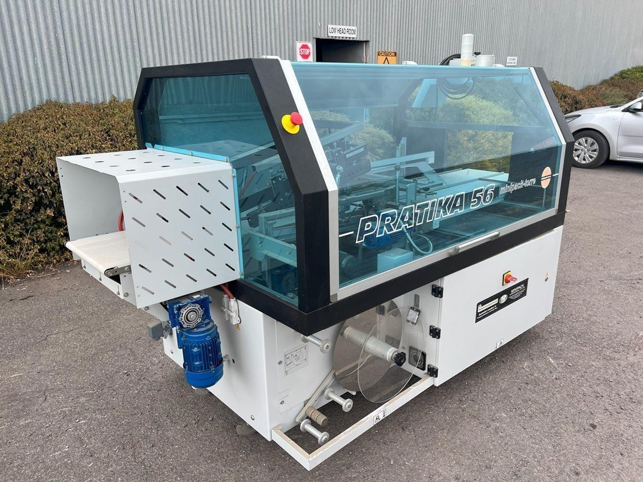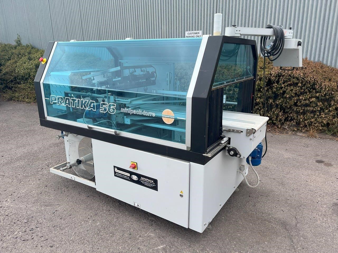 Minipack-Torre automatic heat shrink packaging machine with a L-Bar sealer. This machine will feed your product on the infeed conveyor and enclose it into the film wrap. The L-Bar sealer seals the film wrap, and the outfeed conveyor removes the now enclosed product out of the machine. In a typical setup a heat shrink tunnel will be placed on the outfeed, and the products film wrap will shrink/mould to fit tight around the product. Single Phase 240V. Automatic or manual modes. L-Bar sealer. Easy to adjust for desired width and height. Max product dimensions: 600mm x 400mm x 160mm High. Year: 2014 Unit in excellent condition.