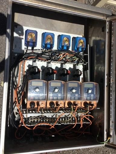 Water Treatment Dose Pumps in St/Steel cabinet.4 Pro Minent Gamma L Variable dose pumps.4 Small Peristaltic Pumps.Mounted in SS Cabinet.