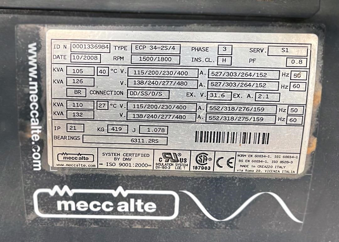 kVA - 105kVA Standby rated (100kVA prime rated)