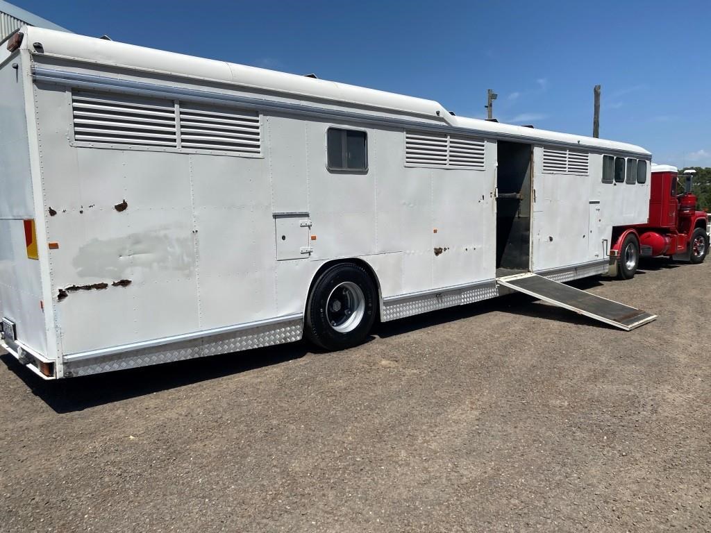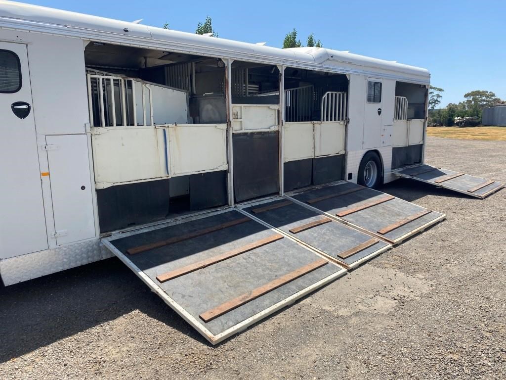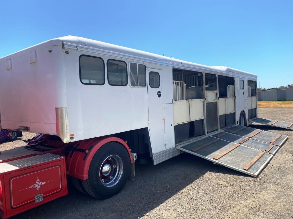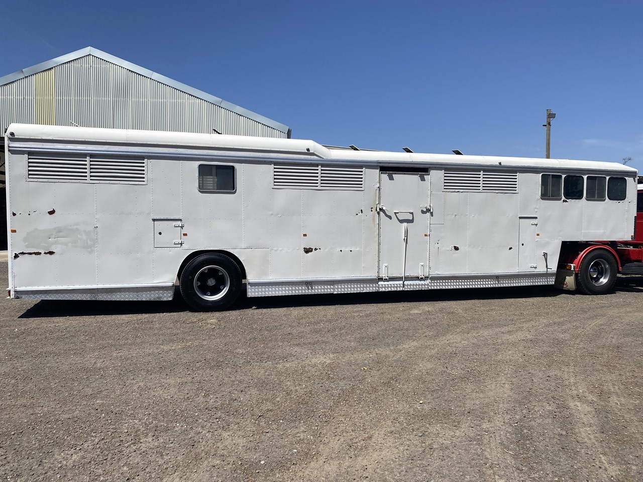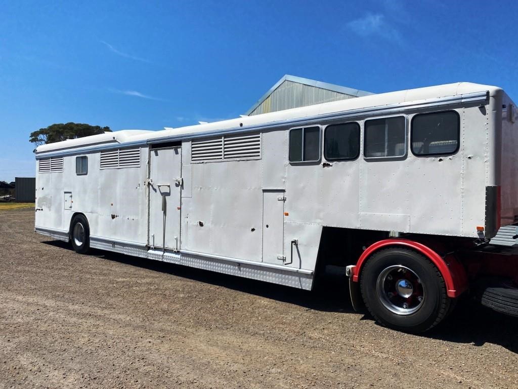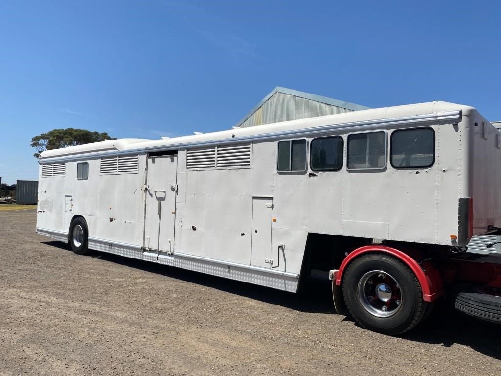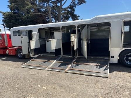 Semi Trailer 10 horse float with sliding dividers, 12.5 Mtr overall length, built or (refurbed?) by Richards Coachworks in 2019, airbag suspension, LED lights, appears to be in generally good condition and needs a minor tidy up on the outside. All appears to work as it should, and tows well. $21000 + GST = $23100 Inc GST. Located in Geelong Victoria