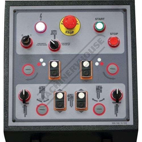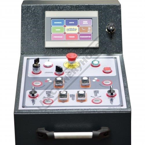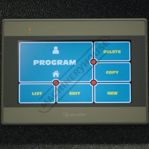 NC panel provides you to control an axis on manual, automatic or semi automatic mode, X & Y Axis can be moved by control buttons, X-Axis = rotation of left & right drive rollers and Y-Axis = up & down position of the top roller. NC control unit has store up to 500 programs with 200 lines on each program. The storage capacity can be increased to 10000 programs with the use of a USB flash memory stick.