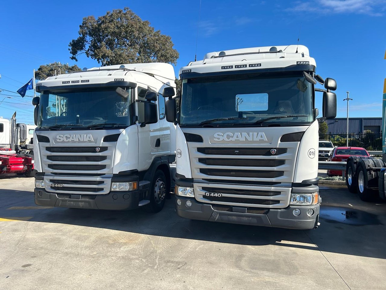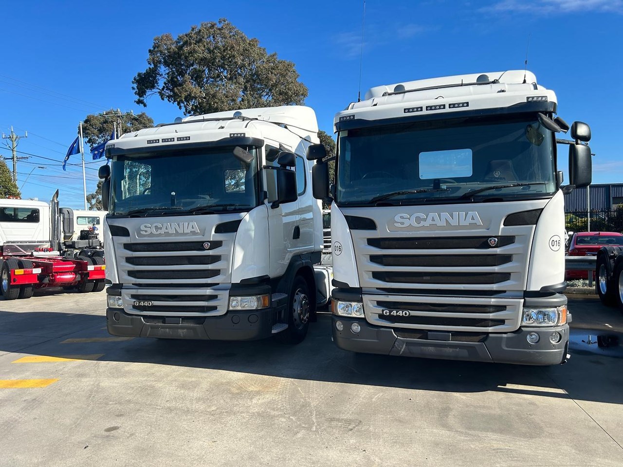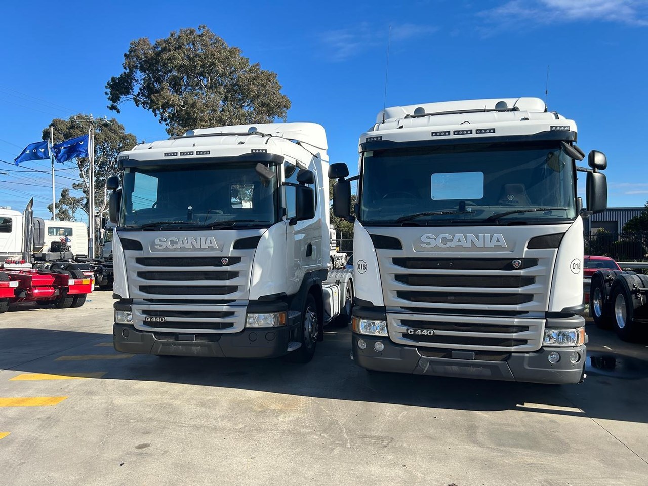 1 only from 2 , 2017 Scania  G440 6x4 Sleeper cab prime mover, Scania 440 HP, 14 speed auto transmission, airbag suspension, Diff Lock And Cross Locks. Disc Brakes , With EBS, ABS, Traction Control. Aero kit, Alloy Tanks,  618,000 kms and 704,000 km trucks