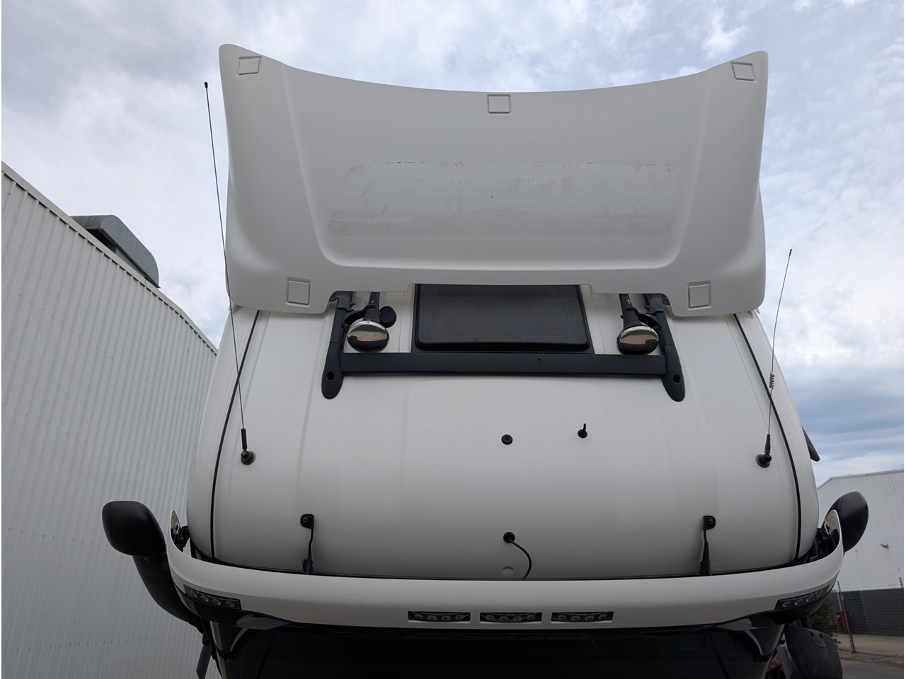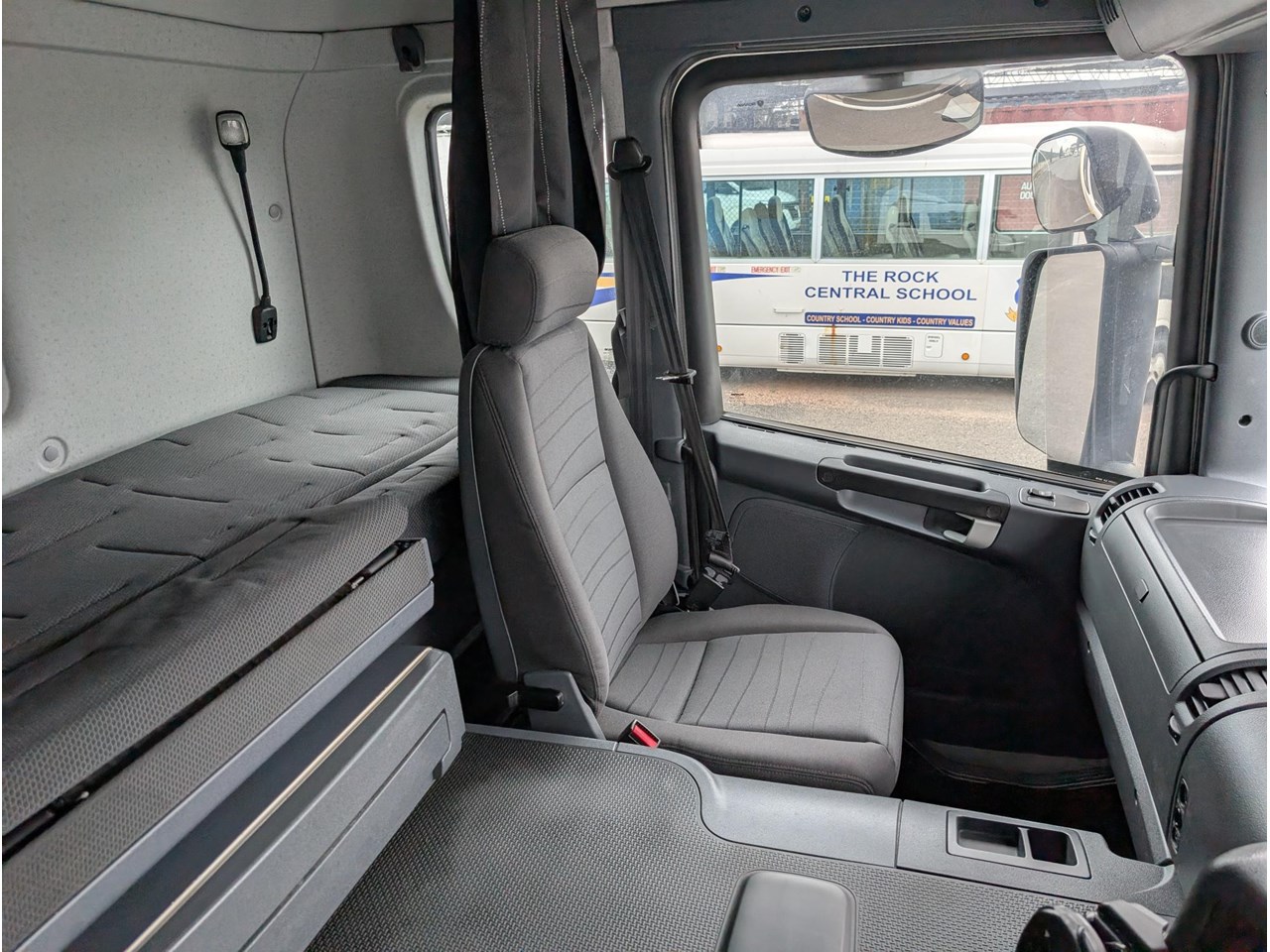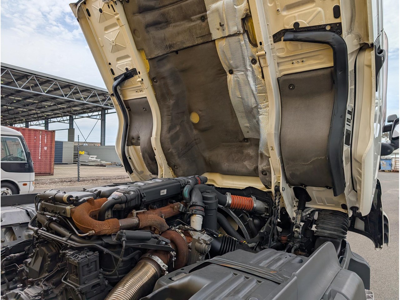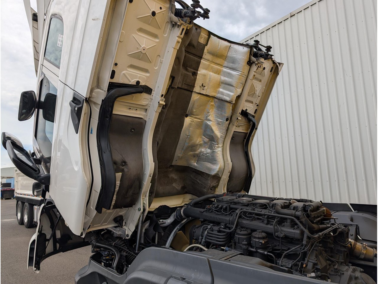 Sleeper Cab, 320HP 5 Cyl 9.2Ltr Turbo Intercooled Diesel, 12 Speed Opticruise Automatic, Exhaust Brake, GVM: 26,500kg, Lazy Axle on Airbag Suspension with Raise / Lower Control, Axle Lock, ABS Brakes, Air Drivers Suspension Seat with Lumbar Control & Integrated Boom Mic, Power Steering, Cruise Control, Tilt/Tele Steer Column, Power Windows, Electric & Heated Mirrors, Air Conditioning, Integrated Bunk Fridge, CD/Tuner Infotainment Unit with Bluetooth Connectivity, GME TX4500 UHF Radio, f/w 14 Pallet Austruck Jumbo Curtainsider Body (Internal Measurements 8.71m L x 2.91m H), Steel Chequerplate Floor, Raised Edge Coaming with 1,200mm Centre Gate Pockets, 1 x 3.64m L Mezzanine Deck in Front Half with Provision for 2nd Mezzanine in Rear Half, Load Restraint Curtains, Roof Mounted Sliding Load Retraints, Load Binders in Tracks, Internal LED Worklight, Front & Rear Curtain Tensioners & Ladders, Rear Barn Doors with Double Cam Locks, Nose Cone, Dual Fuel Tanks, Passenger Side Mounted Toolbox, 295/80R22.5 & 11R22.5 Tyres on 10 Stud Alcoa Alloy Rims & LED Lights.