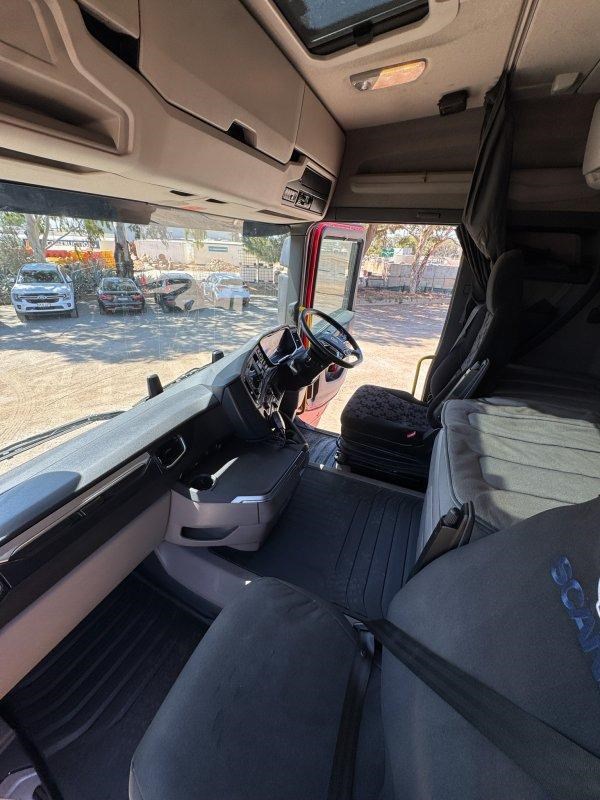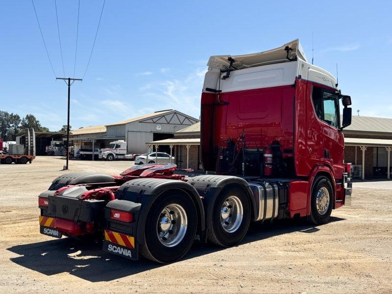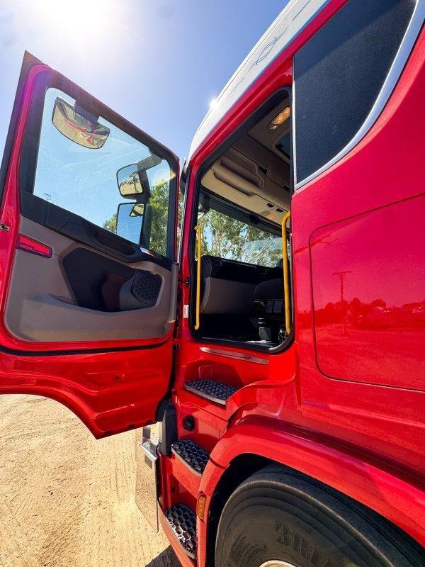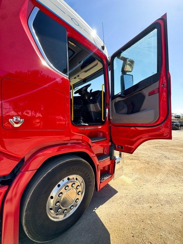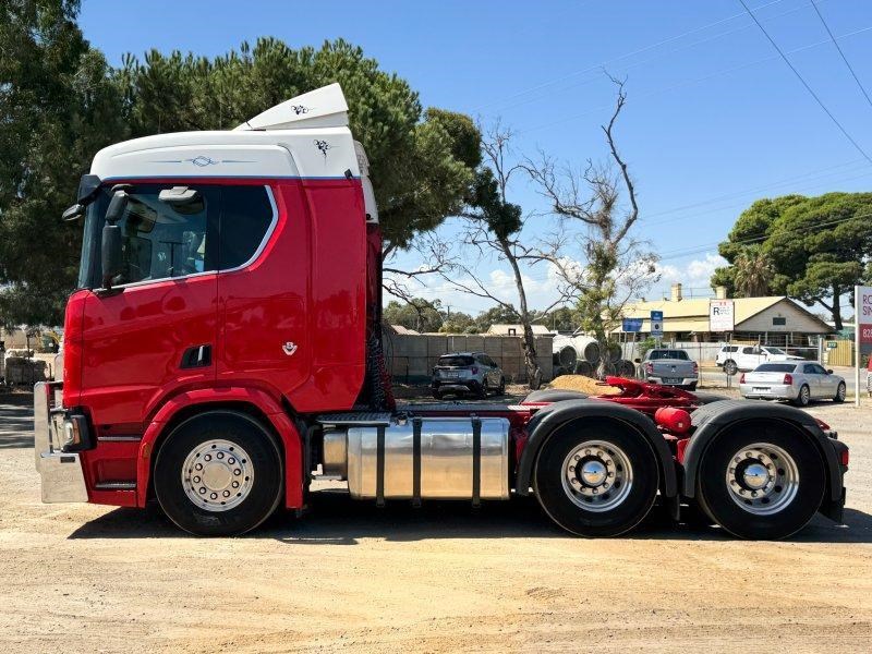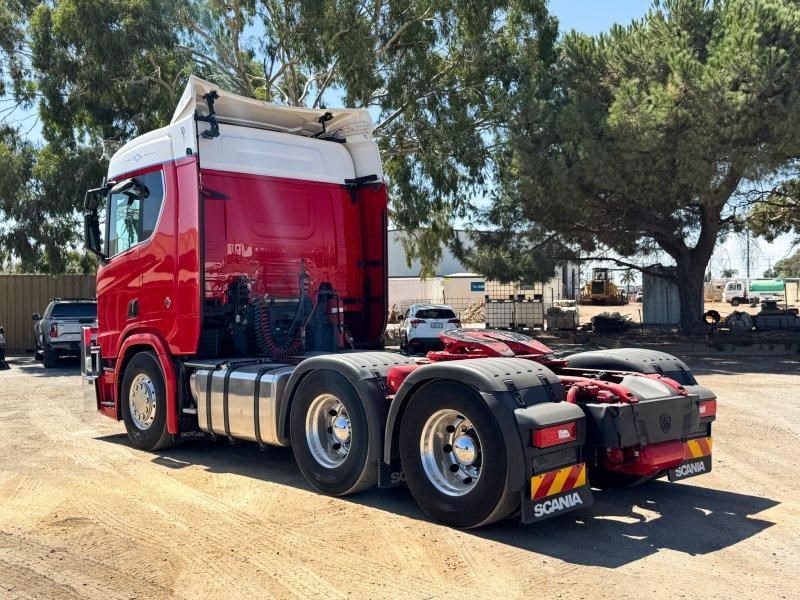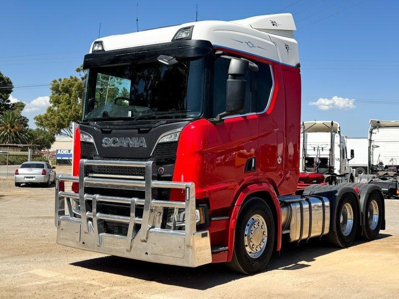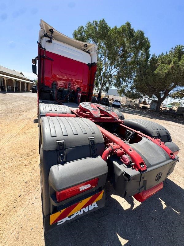 2021 Scania R620 6x4 Prime Mover, Scania V8 Engine @620HP, 12 Speed AMT Transmission, Scania Rear Axles on Air Bag Suspension, Polished Alloy Bullbar w/LED Lightbar, Factory Sun Visor, Aero Kit w/Wings, Electric Adjustable Roof Scoop, 10 Stud Alloy Rims, Factory Fitted Drive Guards, Square Fuel Tanks, AdBlue, SAF-Holland 50/D210 Ballrace QRTT, Chassis Deck Plate, Air Ride Drivers Seat, Scania Infotainment System w/Navigation, Draw Fridge, UHF, A/C