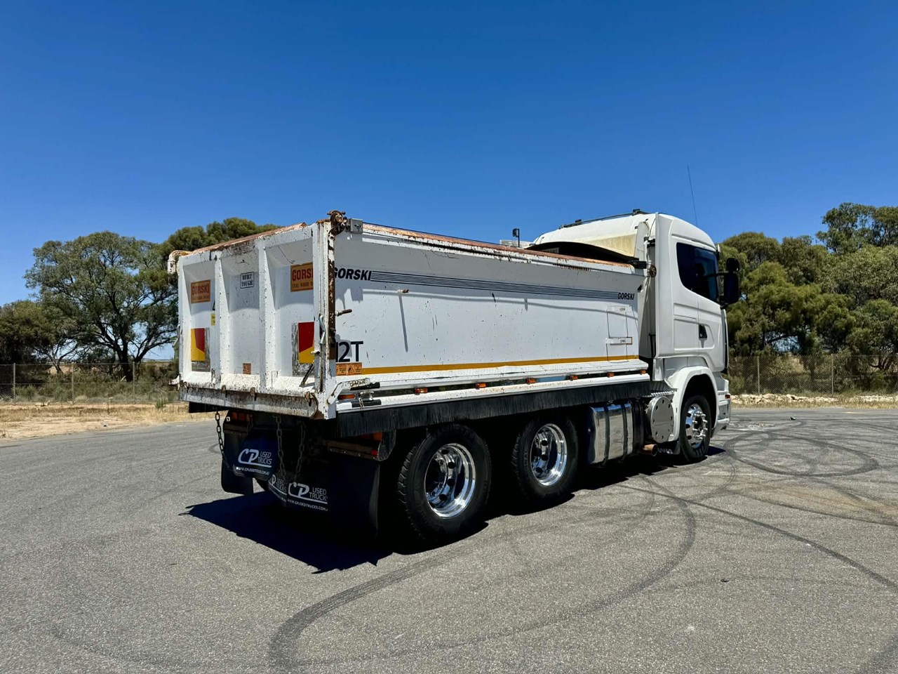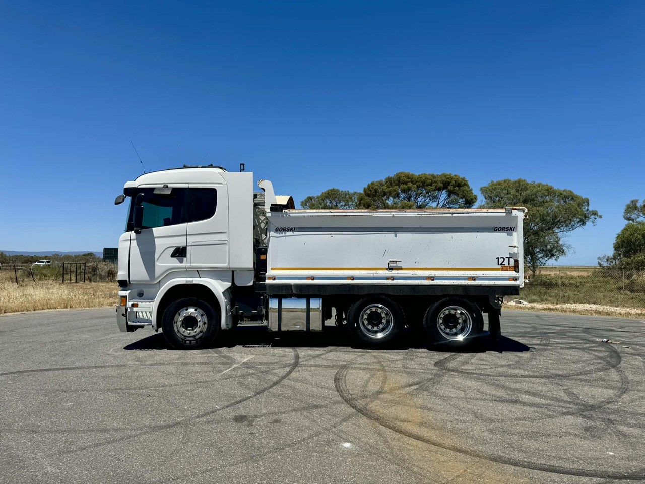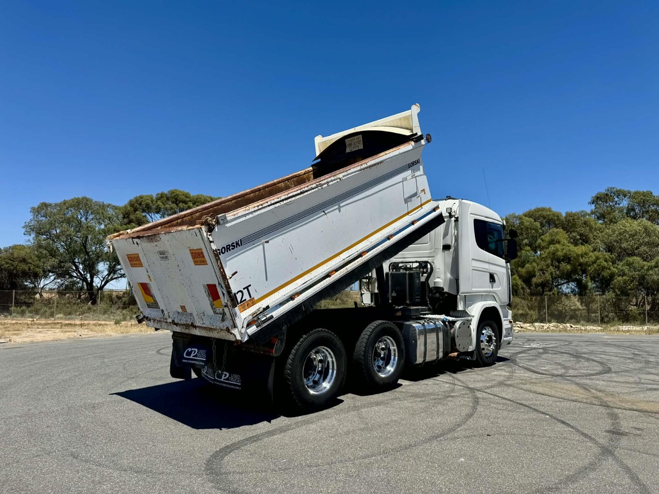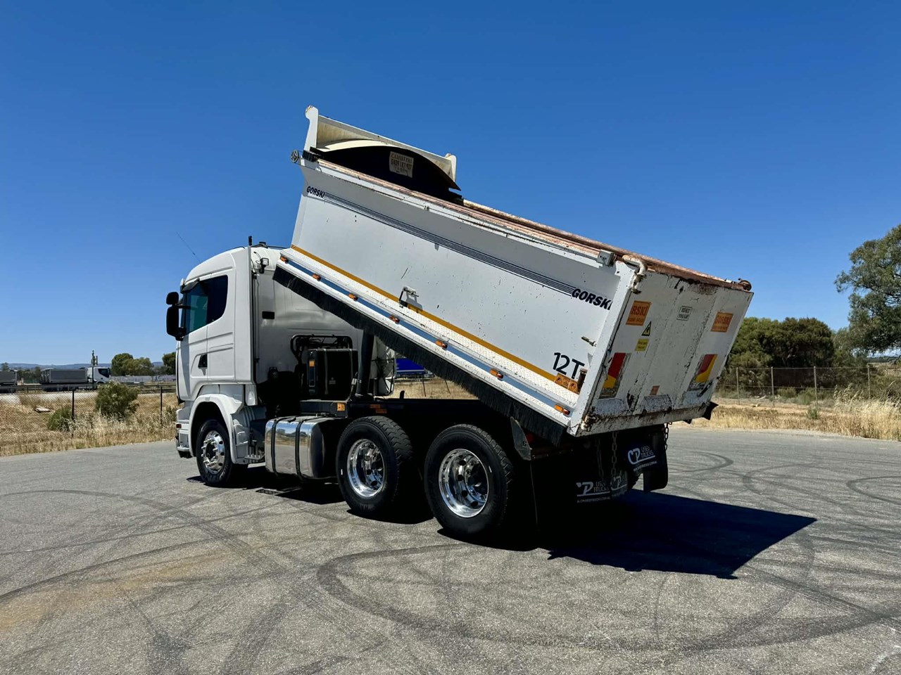 Gorski built tipper body with Razor electric tarp and 2-way tailgate and ring feeder . 4.5m x 1.3m x 2.5m .