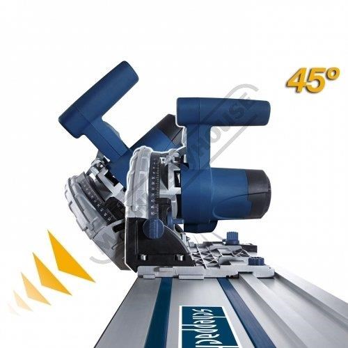 The combination of a Scheppach cs-55 parallel plunge saw with the ``optional`` guide rail allows the user to maintain a smooth and constant hand position while cutting 90º or 45º cuts.