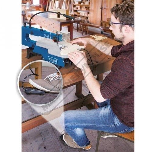The New scheppach Deco XL scroll saw includes a very user friendly on/off foot pedal, allowing the operator to have both hands on the workpiece whilst controlling the power to the blade via foot pedal switch for when cutting fine & decorative work.