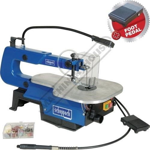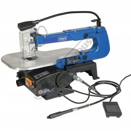 SCHEPPACH Deco XL Variable Speed Scroll Saw 16`` (406mm) throat Depth Includes Foot Switch, LED Light, Dust Blower, Flexible Drive Shaft & 64 Piece Sanding-Polishing Kit