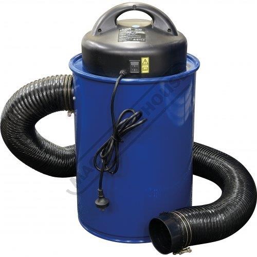 HPLV = High Pressure Low Volume System: HPLV extractors operate more like a standard vacuum cleaner as high pressure is increased or maintained when the inlet diameter is restricted or reduced. This extractor features a powerful 1100W through - flow motor design drawing dust & wood chips into a large Steel canister storage drum prior to entering both cardboard cartridge and paper bag filters; giving 2 levels of filtration down to 0.5 - 1 micron. This portable extractor is intended & ideal for the home workshop removing wood chips and dust from woodworking machines & power tools especially fitted with reduced ports from Ø100mm to Ø32mm.