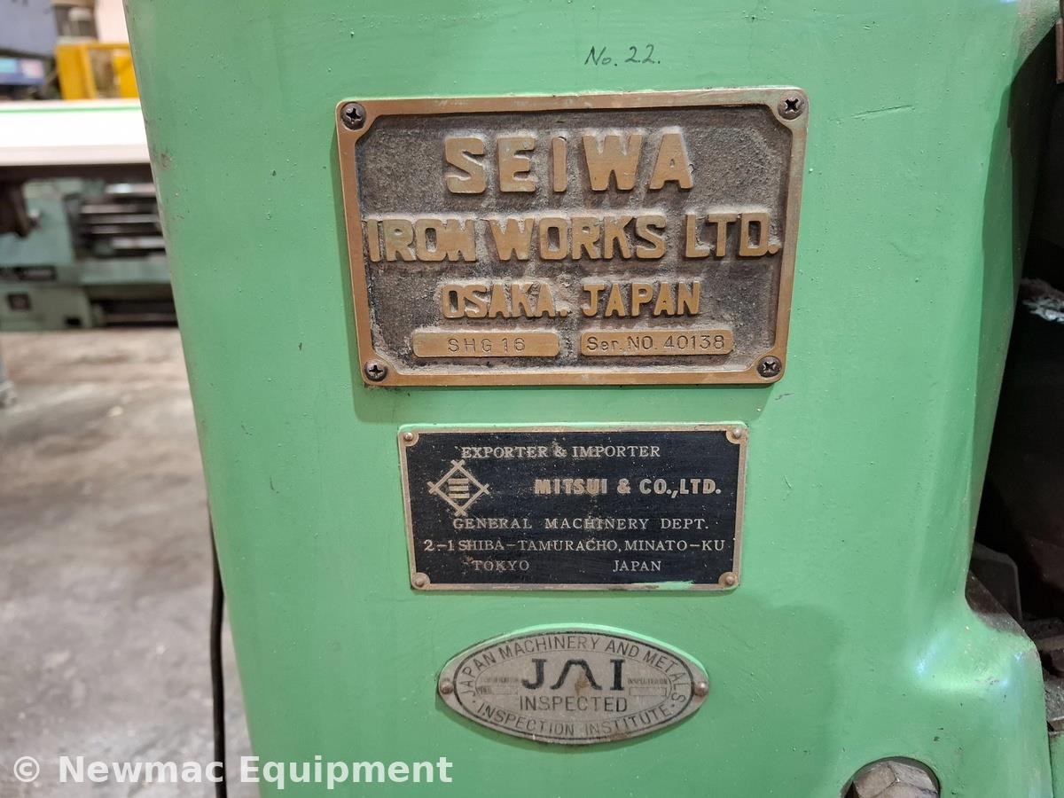The Seiwa SHG-16 is a specialised machine designed for precision grinding of hob flutes, ensuring gear cutting tools remain sharp and accurate for continued use in production. Built in Japan, this model reflects the robust engineering quality that Seiwa is known for in the gear-manufacturing industry.