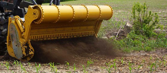 The FC grinds stumps of trees, especially in plantations to be renewed, where stumps are all in a raw. It then prepares the soil for the plantation of new trees. It eliminates tree stumps up to a depth of 27 cm [11``] by grinding them into small pieces and mixing them with the soil.
