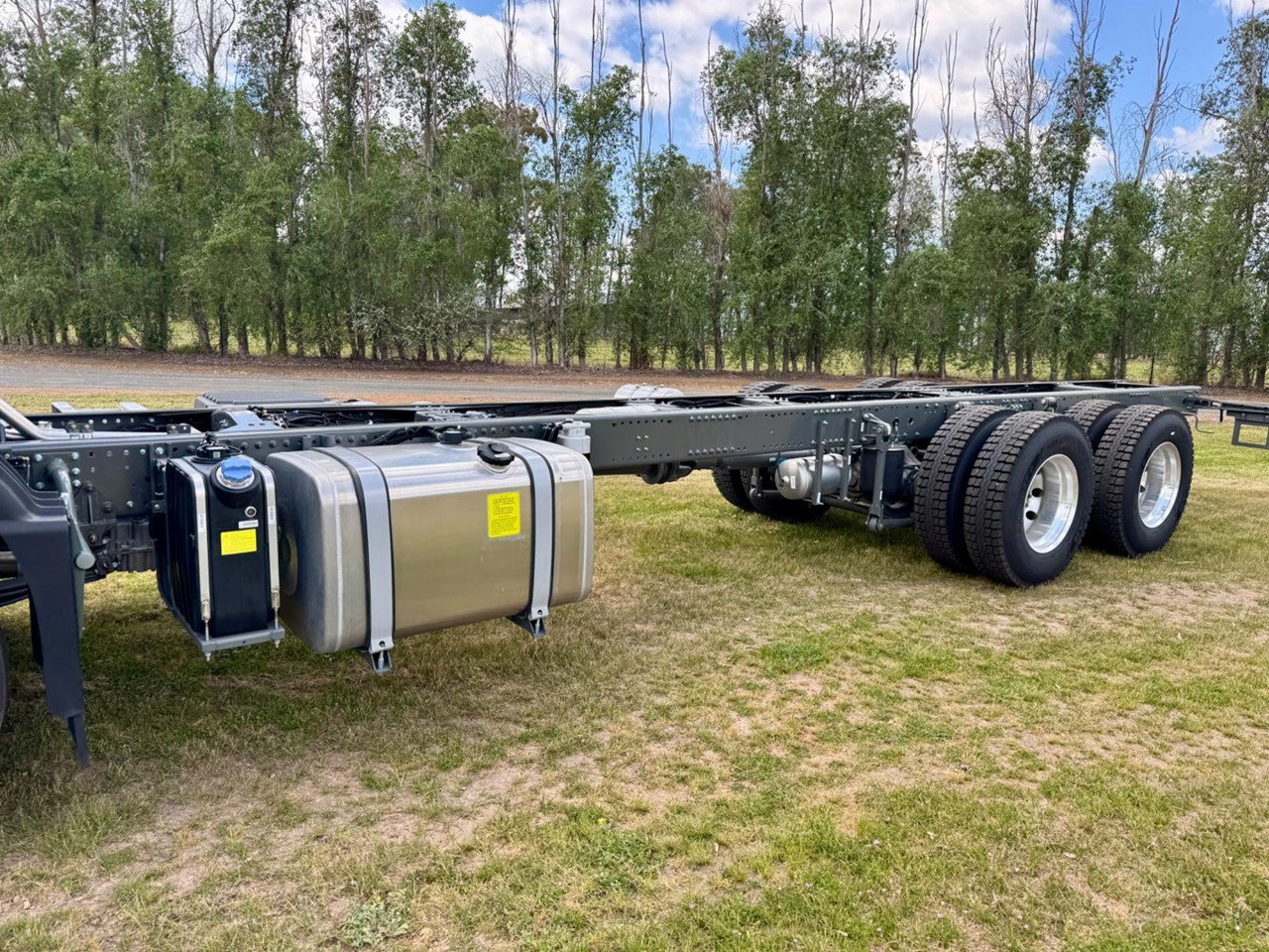 New Sinotruk Sitrak Model G5 6x4 rigid cab chassis, 6.3m long wheelbase with 8.8m of usable chassis, suitable for Tautliner, Tray top, Tilt tray etc. 336hp MC07, 7L, 6-cylinder 4-valve in-line engine, Allison 3000 6Speed automatic Transmission, 7 tonne rated front axle with parabolic springs, MCY11, 25 Tonne rated rear axles on airbag suspension, Differential lock and cross locks on both axles, disc brakes, aluminium tank with lockable cap, 300L Diesel drivers side& 40L AdBlue passenger side, automatic climate control with air conditioning, ISIRI Leather Driver seat with heating and cooling, ISIRI Passenger seat, Electronic dash display and 7 touch screen with Bluetooth 360 degree camera etc etc. 2 Year 300,000 klm warranty. FINANCE OPTIONS AVAILABLE. UNITS IN STOCK NOW.