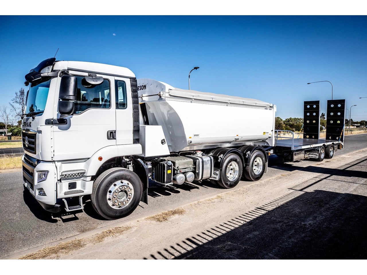 The Sitrak G5S 310 paired with the Jamieson Heavy Duty Steel Tipper and Flat Deck Pig Trailer delivers a highly versatile, high-payload combination purpose-built for Australian conditions.