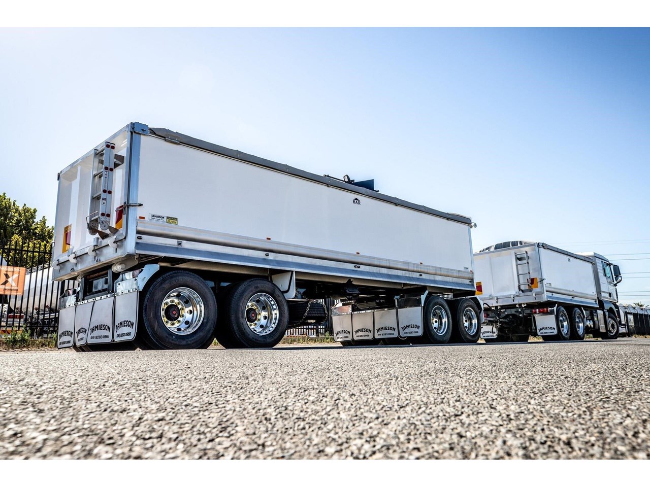 Matched to the rigid tipper is a Jamieson Quad Axle Aluminium Dog Tipper, designed to deliver exceptional payload performance under. The quad axle configuration allows higher axle mass allowances while maintaining excellent tracking and tipping stability.