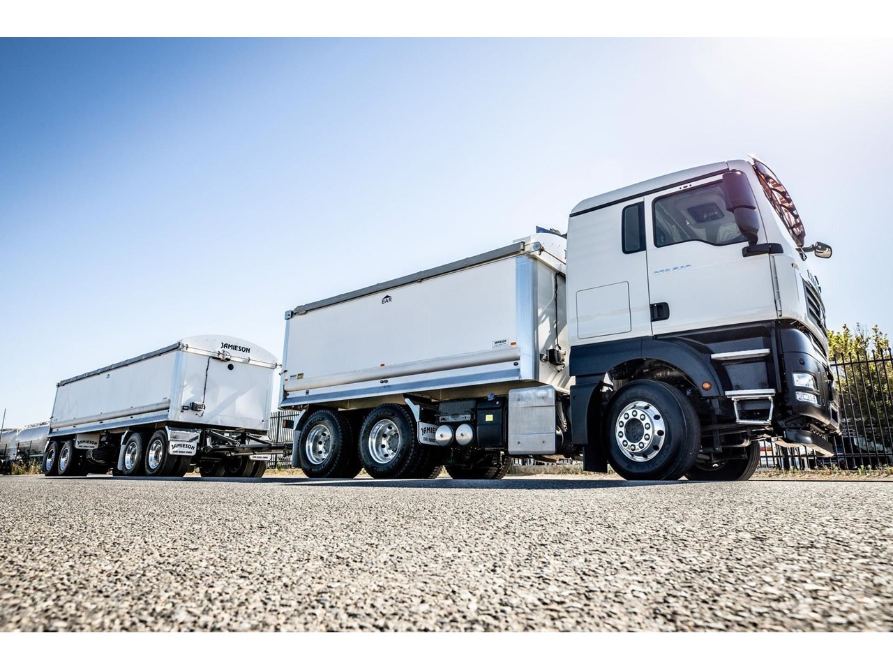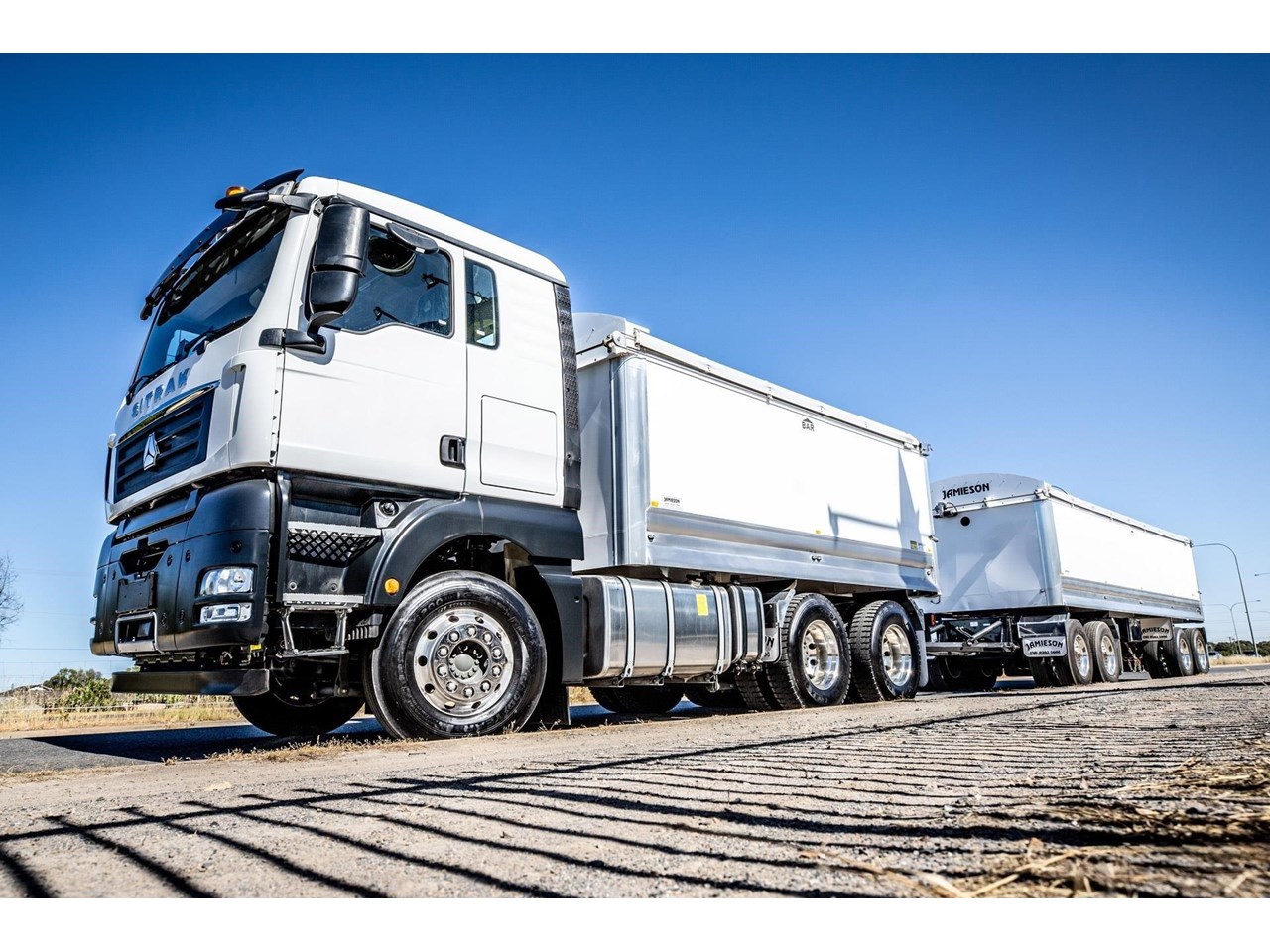 The Sitrak G7S 540 paired with the Jamieson Aluminium Tipper and Quad Axle Dog Aluminium Tipper delivers a high-productivity bulk haulage solution engineered for maximum payload efficiency and long-term performance in Australian conditions - ideal for operators seeking reduced tare weight, improved corrosion resistance and increased tonnes-per-trip without compromising durability or safety.