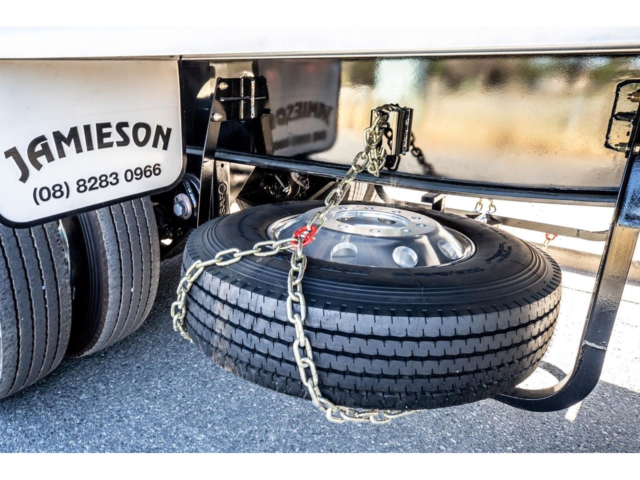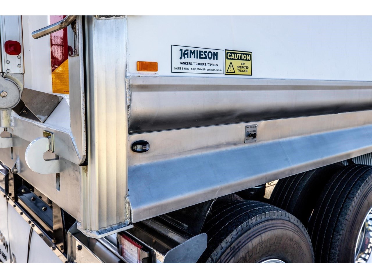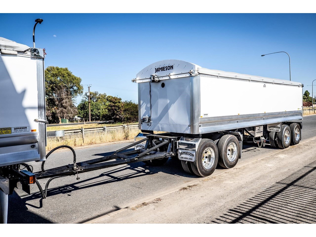 Matched to the rigid tipper is a Jamieson Quad Axle Aluminium Dog Tipper, designed to deliver exceptional payload performance under. The quad axle configuration allows higher axle mass allowances while maintaining excellent tracking and tipping stability.