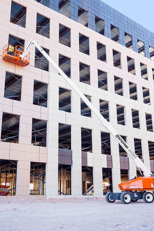 The Snorkel 660SJ All Terrain telescopic boom lift offers enhanced traction. Turf-friendly independent rubber tracks can traverse uneven terrain without sinking into loose sediment, soft soil, sand, snow and mud. Designed with full-time active oscillating axle, the 660SJ All Terrain delivers smooth performance and low ground pressure on sensitive environments.
