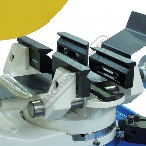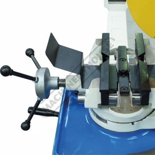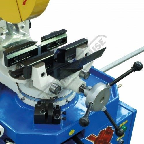 The MC-315F CE comes standard with a self centring vice, so there are no changes to make when changing diameters of tube or pipe. The vice also has a floating clamp that independently (left to right of saw blade) holds the jaws. This securely holds both sides of the cut material without dropping them into the rotating blade, which extends blade life.